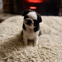 Sweet Jaq is the last puppy available. He is 8 weeks old and has had his first set of shots and health exam. He is such a sweet loving boy