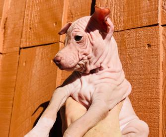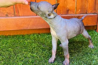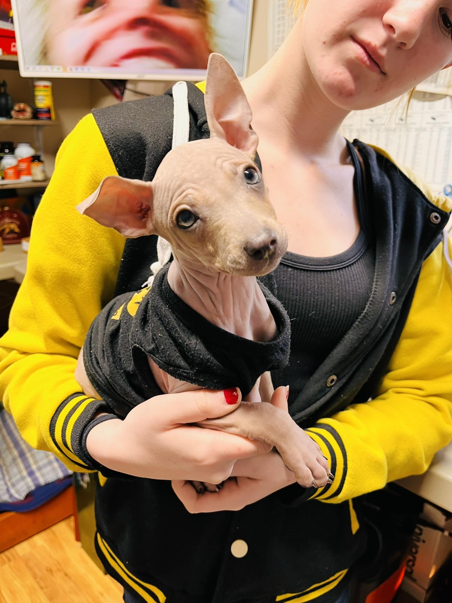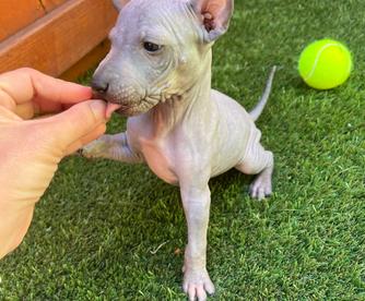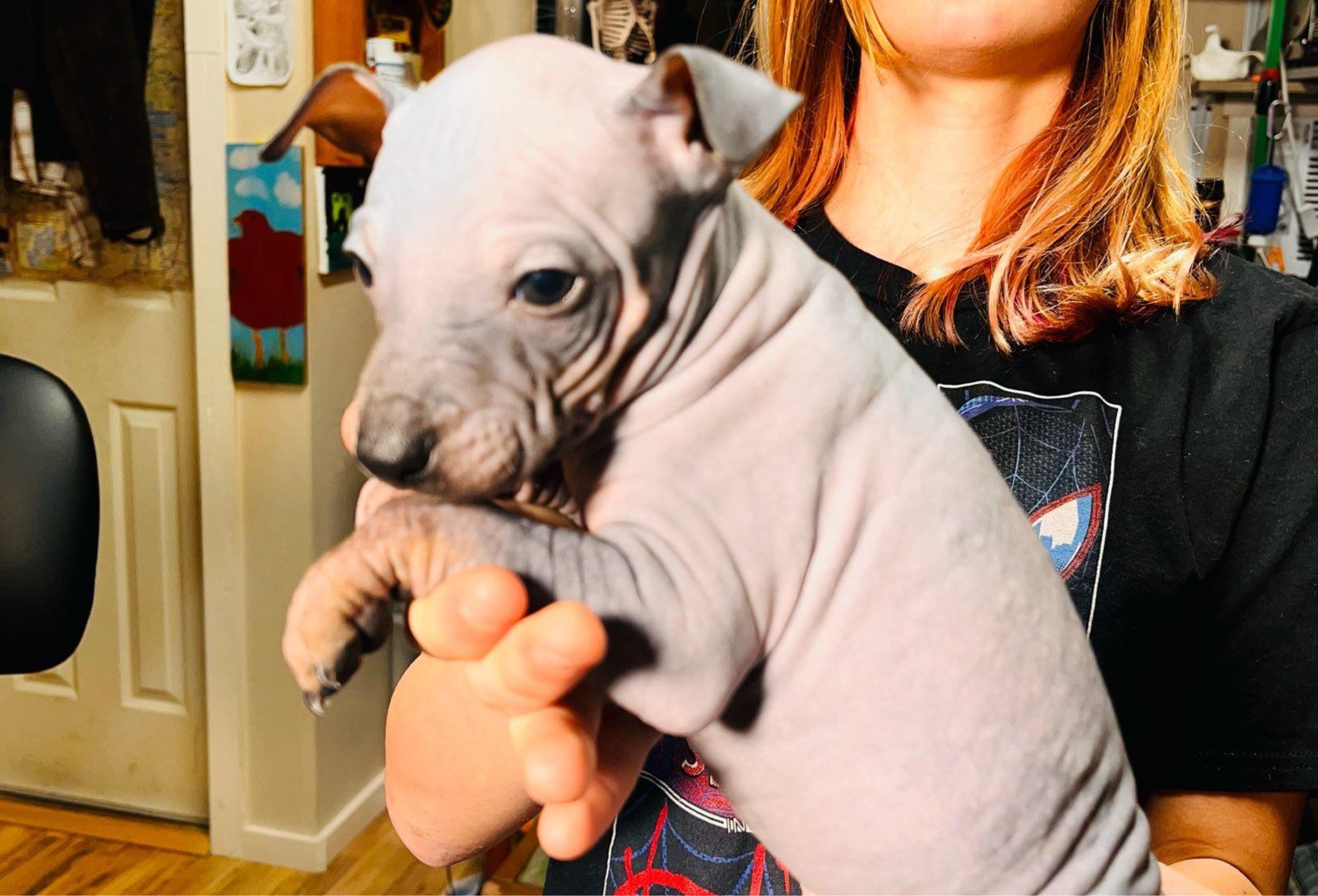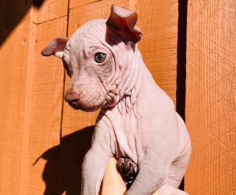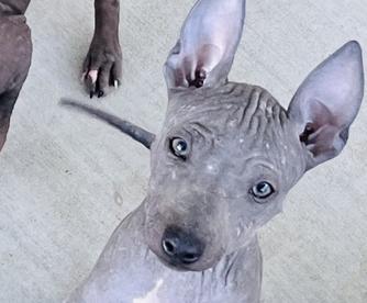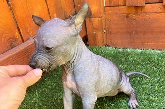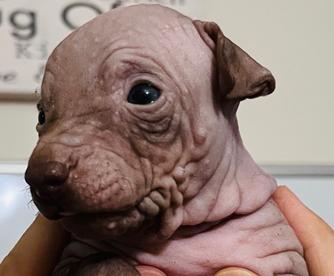 Our puppies have hairless coats. Coat types may vary depending on the parent dogs.