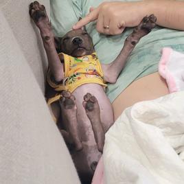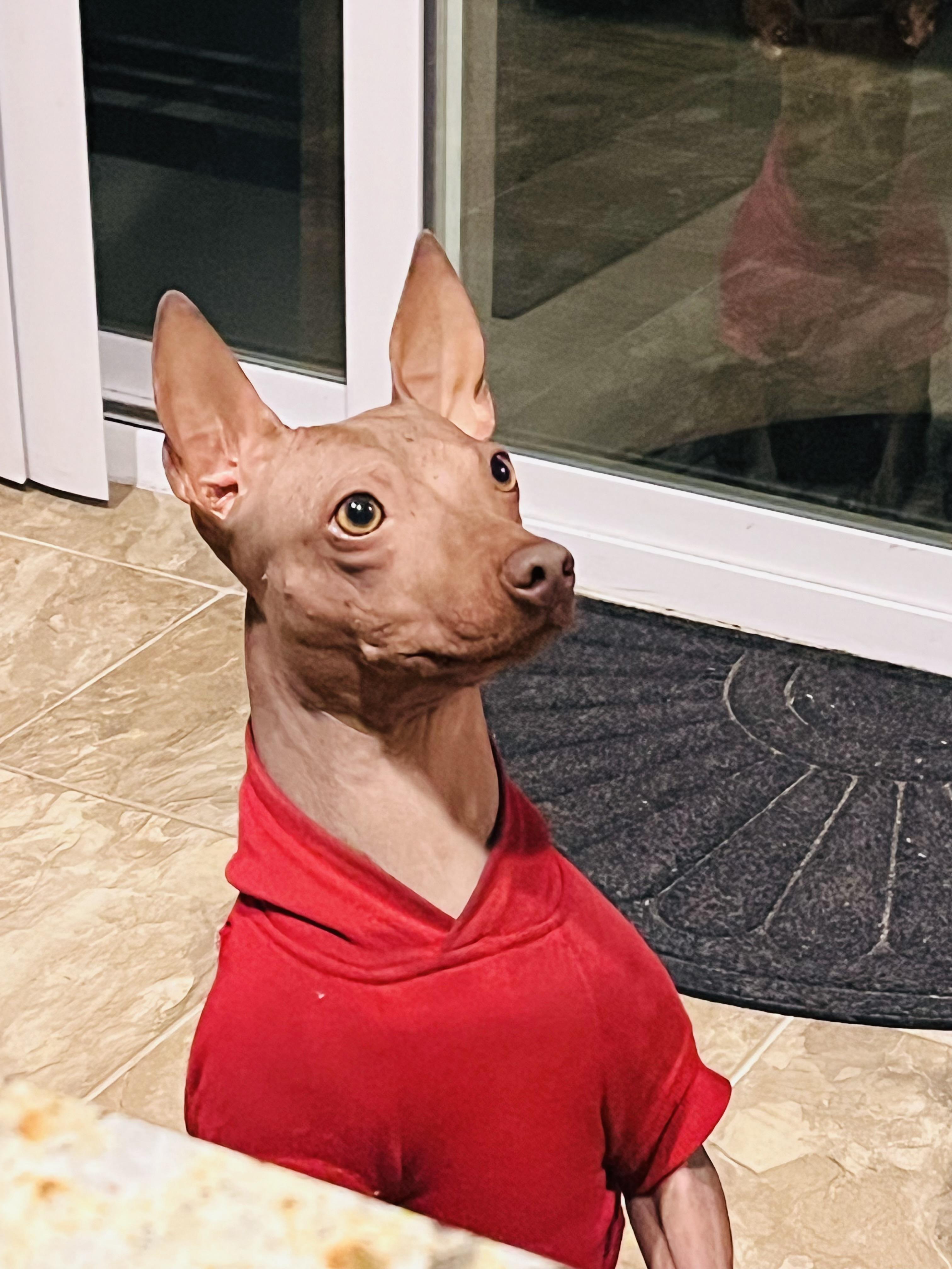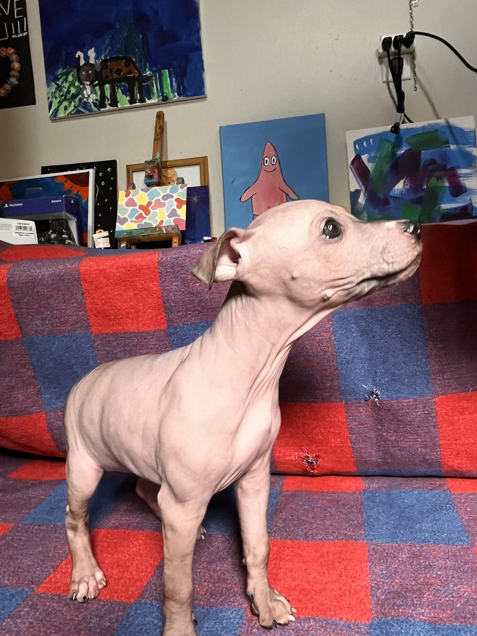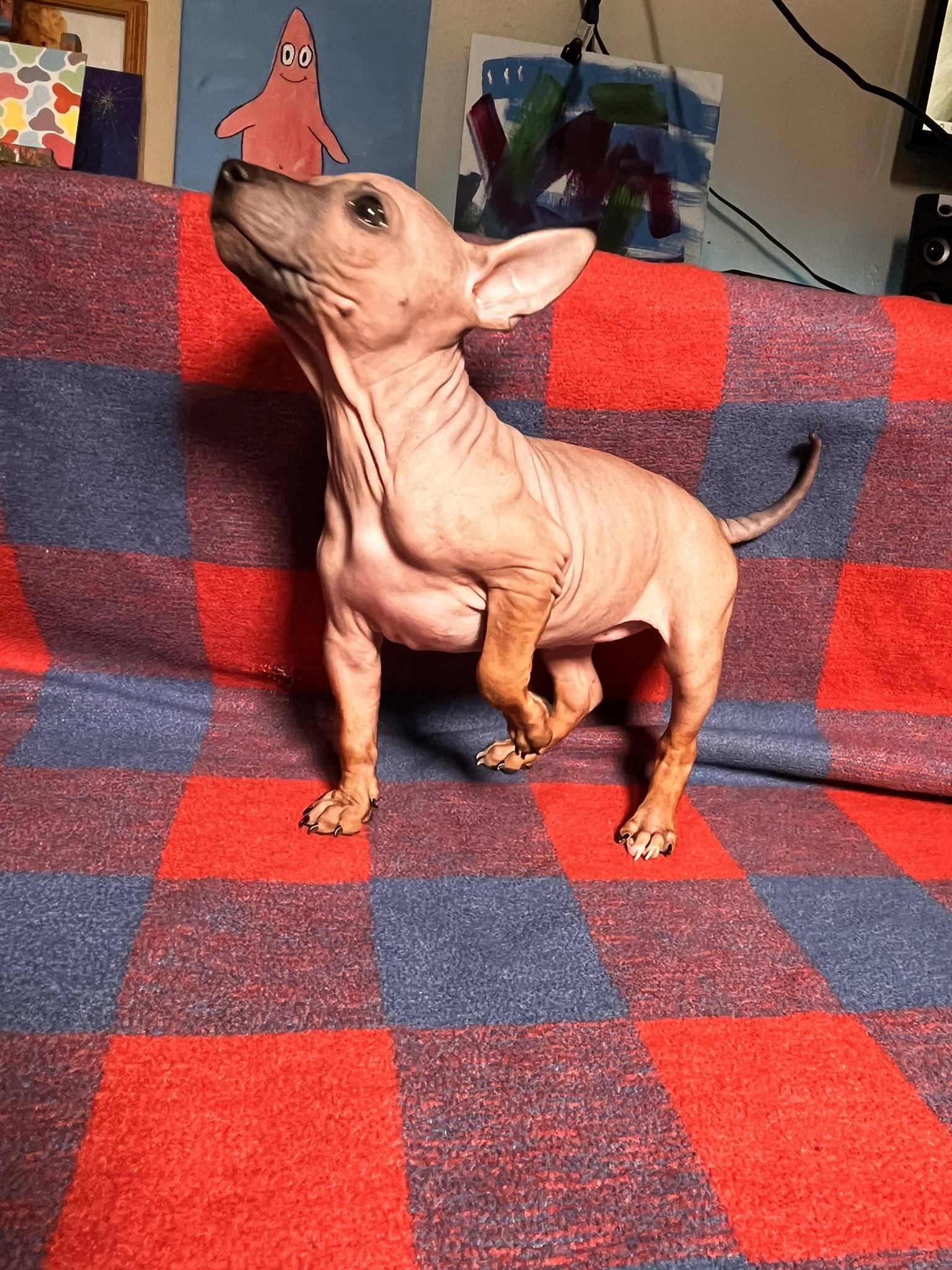 Our puppies have hairless coats. Coat types may vary depending on the parent dogs.