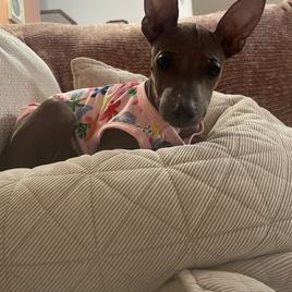 Maizie's favorite thing to do is to remove the squeakers from toys. She enjoys puzzles and hidden treats. Maizie is CHIC certified (meaning she has passed all health checks for her breed). She is a great mom. This will be her second litter. Maizie enjoys running fast, fetching, and cuddling on the couch. She follows commands well and is a very quick learner.