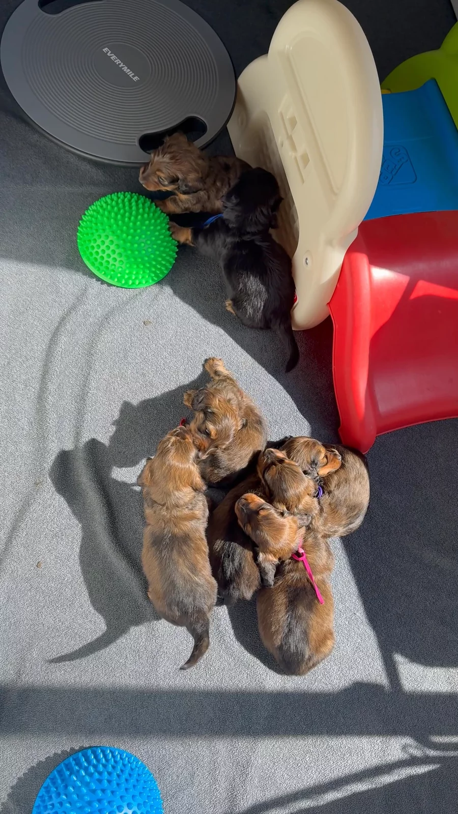 We are very excited to have added Houston to our home. Houston so far is a feisty little dog who goes out of his way to chase around the other Dachshunds. He has fantastic confidence already and no one is a stranger. He is still young so we are seeing how he grows out and matures. Once he's older we are going to see what all he enjoys to do! We plan to do conformation with him and potentially fast cat, barn hunt, and other fun things. Houston is out of some very accomplished lines so we have high hopes in finding something that he will succeed in. He will not be used as a stud until he is older, titled, and passed his breed relevant health testing.