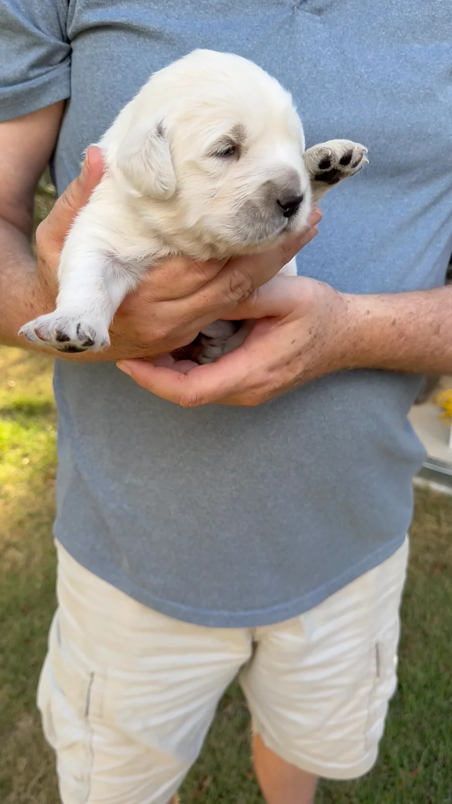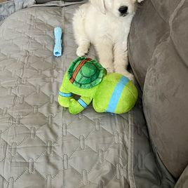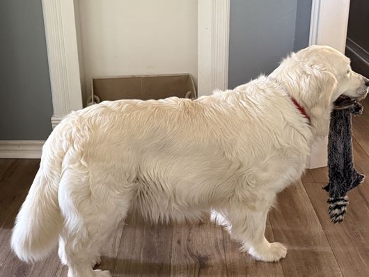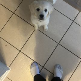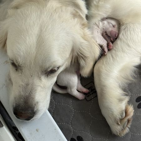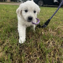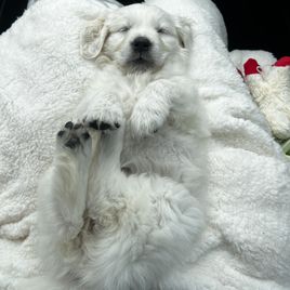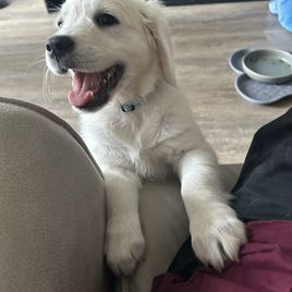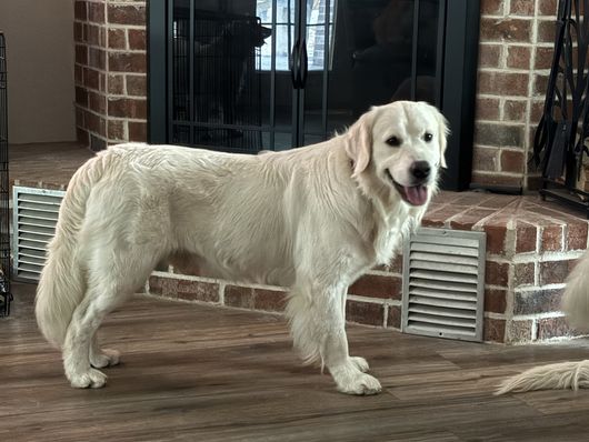 My wife and I spent quite a bit of time researching where to find the right family pet. After reading the glowing reviews for Lynn at Gold Care Golden Retrievers, we felt confident that if our experience was anything like others’, we’d be in good hands—and we were absolutely right. From the very beginning, Lynn was responsive, kind, and informative. She answered all our questions, welcomed our ideas for preparing for pickup, and kept us updated with new photos every week. Throughout the waiting period, she continued to offer helpful advice and reassurance, which made the entire process feel smooth and personal. One of the biggest differences we noticed was how well-adjusted our puppy was from the moment we brought her home. Because Lynn raises her puppies in her home—alongside her family and other pets (including a cat, goat, and tortoise)—our cream Golden came to us already comfortable around people, animals, and household noises. She rode perfectly in the car on the way home, settled in quickly, and adapted to our routine with ease. We’ve now had her for a week, and I can count her potty accidents on one hand. I credit this to Lynn’s early training approach, including allowing the puppies access to a doggy door so they learn to relieve themselves outside. At just eight weeks old, our puppy is already barking to let us know when she needs to go out! She’s also calm and confident—rarely barks, loves her crate, and only wakes once during the night to go outside before going right back to sleep. She even got along beautifully with our outdoor cat from day one. We couldn’t have asked for a better experience or a more wonderful puppy. Lynn clearly loves and cares deeply for every dog she raises, and it shows. We would recommend Gold Care Golden Retrievers to anyone looking for a healthy, happy, and well-socialized new family member.