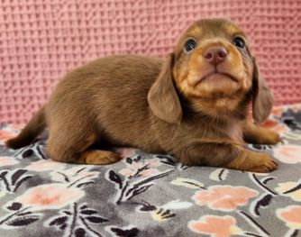 Dolly is a female Dachshund. Carefully selected as a great representative of her breed, Brandy decided to make her part of their program. Brandy has passed Good Dog’s screening process, which involved a review of their breeding practices, environment, and the mental and physical health of their dogs.