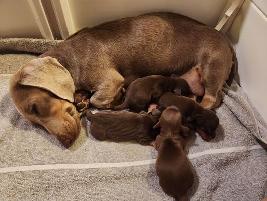 Maggie is a female Dachshund. Carefully selected as a great representative of her breed, Brandy decided to make her part of their program. Brandy has passed Good Dog’s screening process, which involved a review of their breeding practices, environment, and the mental and physical health of their dogs.