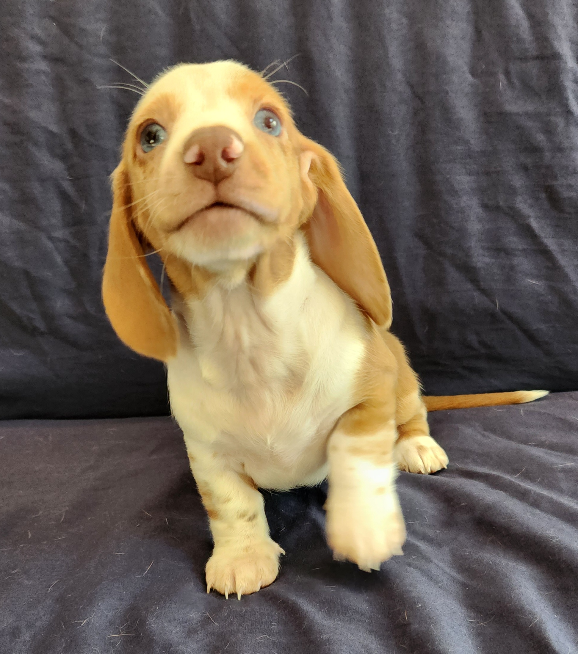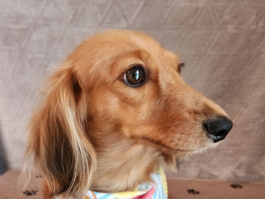 Peach is a female Dachshund. Carefully selected as a great representative of her breed, Brandy decided to make her part of their program. Brandy has passed Good Dog’s screening process, which involved a review of their breeding practices, environment, and the mental and physical health of their dogs.
