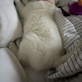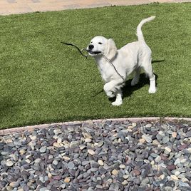 It's not every day that you let a dog into your life, and for me, I was no exception. A couple of months ago, I decided to take that step after years of not owning a pet. From dog-proofing your home to researching how best to take care of your future companion, it's hard to ever feel ready, and for good reason. Aside from the veterans and well-experienced, few truly are ever ready: no amount of prep can account for puppy all a puppy's needs in all its individualistic glory. When I first reached out to Stephanie, I expressed both my interests and my worries about raising a puppy. Stephanie was not only timely with her responses, but she goes above the call of duty and walks beside you on those steps to getting a puppy. She provided information, starting supplies, and all the reassurance I could ever ask for throughout the process. I soon found myself driving home with a golden retriever puppy (that I later named Mango), unsure of the future but hopeful for what it may bring. A couple months later, and I can confidently say that I have no regrets. Mango is a puppy that loves to play and chew like there's no tomorrow. He's incredibly smart, perhaps too smart for his own good: he learned to climb up hardwood stairs on day 2 and to climb over dog gates a week later. He was potty trained in weeks and at 4 months, he knows the commands sit, stay, come, and paw. He's also as cute as they come, and I can't imagine him being anything but a looker and a lover to anyone he meets. Thank you, Stephanie, for all that you've done. And for those out there who are looking for a breeder to trust as you look for your next furry friend, look no further than here for your next companion. You won't regret it. Not by a long shot.