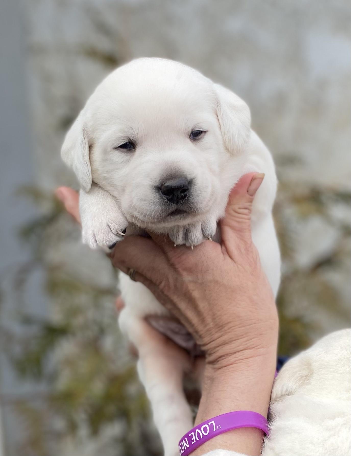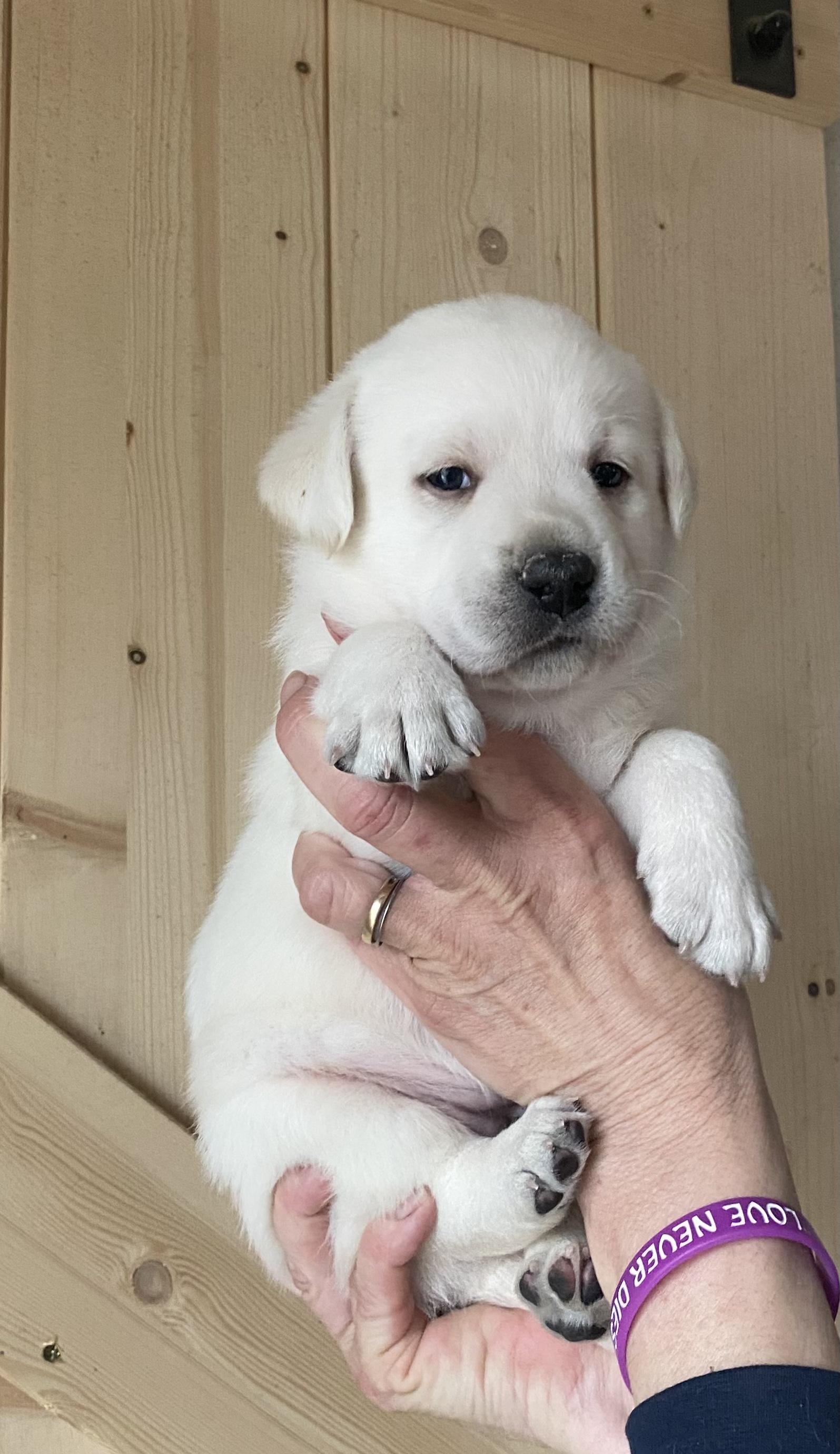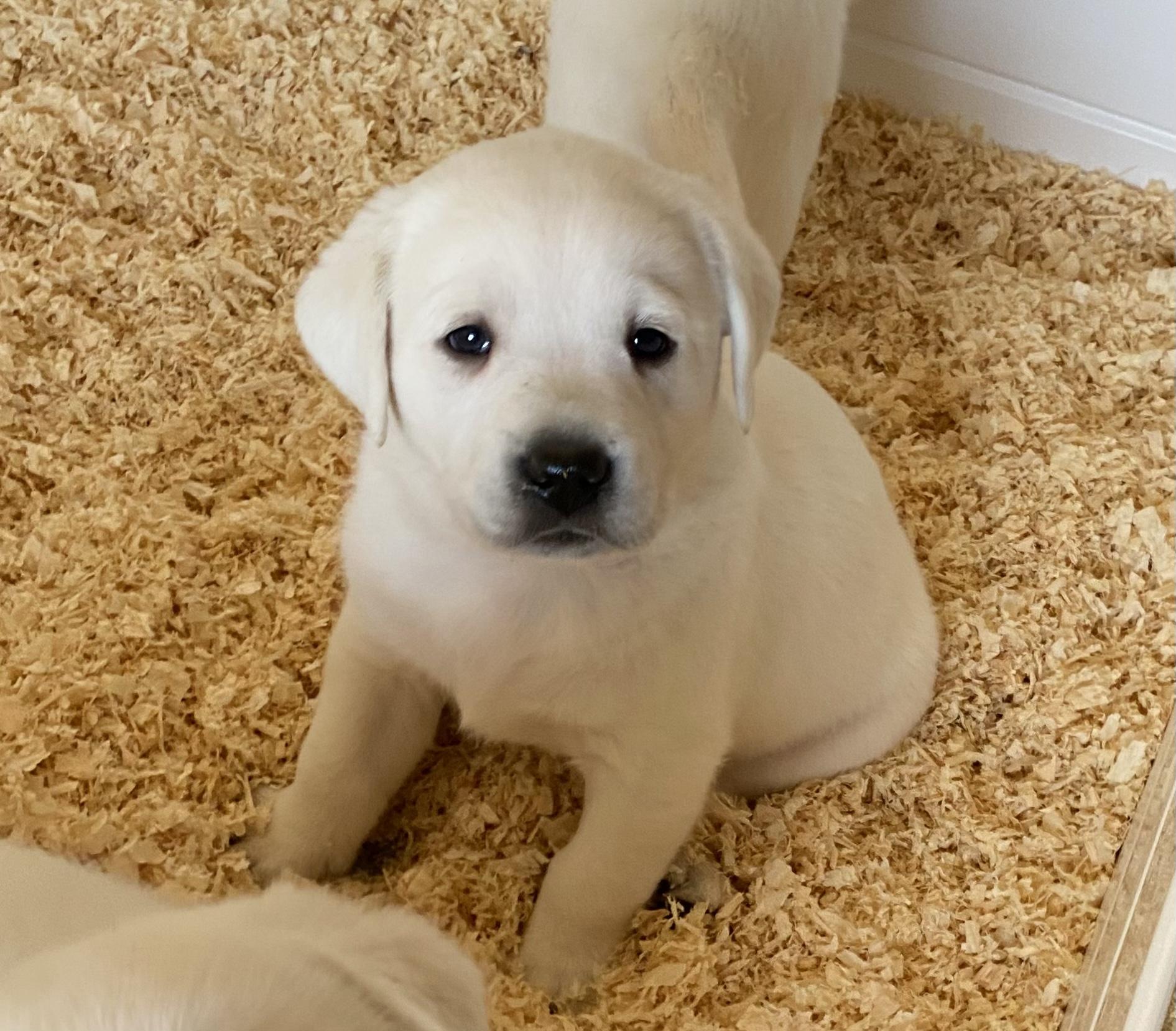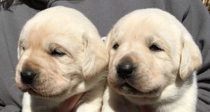 Our Golden Retriever puppies are light golden. Labrador Retriever puppies are yellow. Colors will vary depending on the parent dogs.