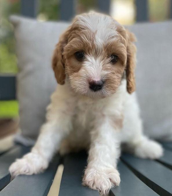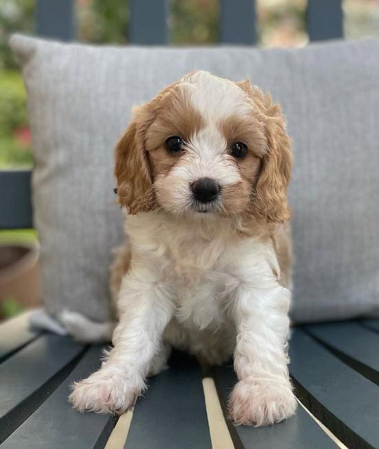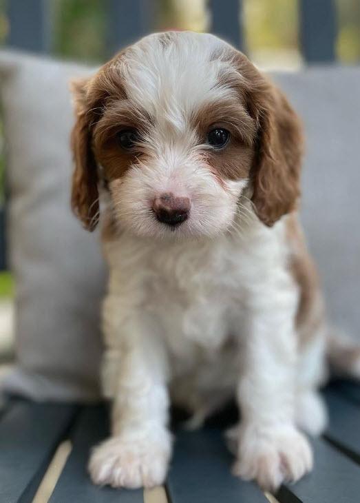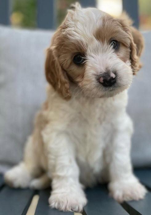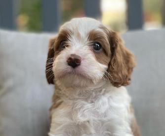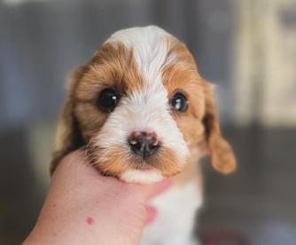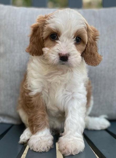 Our Cavapoo puppies include blenheim, tri-color, black and tan, and red. Poodle puppies include red, parti, and phantom. Cavalier King Charles Spaniel puppies include blenheim and ruby. Colors will vary depending on the parent dogs.