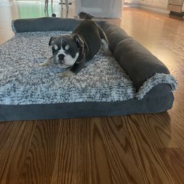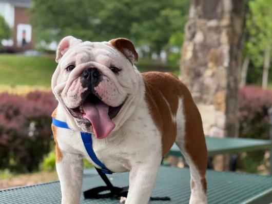 Sarabi is a female Bulldog. Carefully selected as a great representative of her breed, Daniel decided to make her part of their program. Daniel has passed Good Dog’s screening process, which involved a review of their breeding practices, environment, and the mental and physical health of their dogs.
