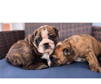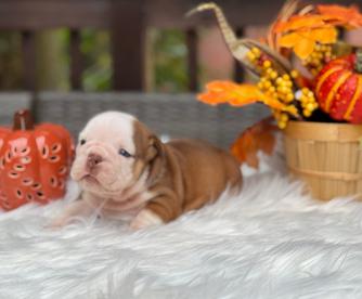 Our Bulldog puppies include white, red brindle and white, red brindle, red and white, fawn and white, and brindle. Colors will vary depending on the parent dogs.