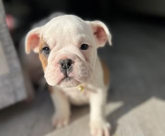 Meet Luna — our beautiful fawn and white English Bulldog with the softest soul and the sweetest face. She’s the kind of girl who wins hearts instantly — gentle, loyal, and full of personality. Luna loves her cozy naps, belly rubs, and being right by your side. With her calm nature and warm spirit, she brings a special kind of joy to every day.