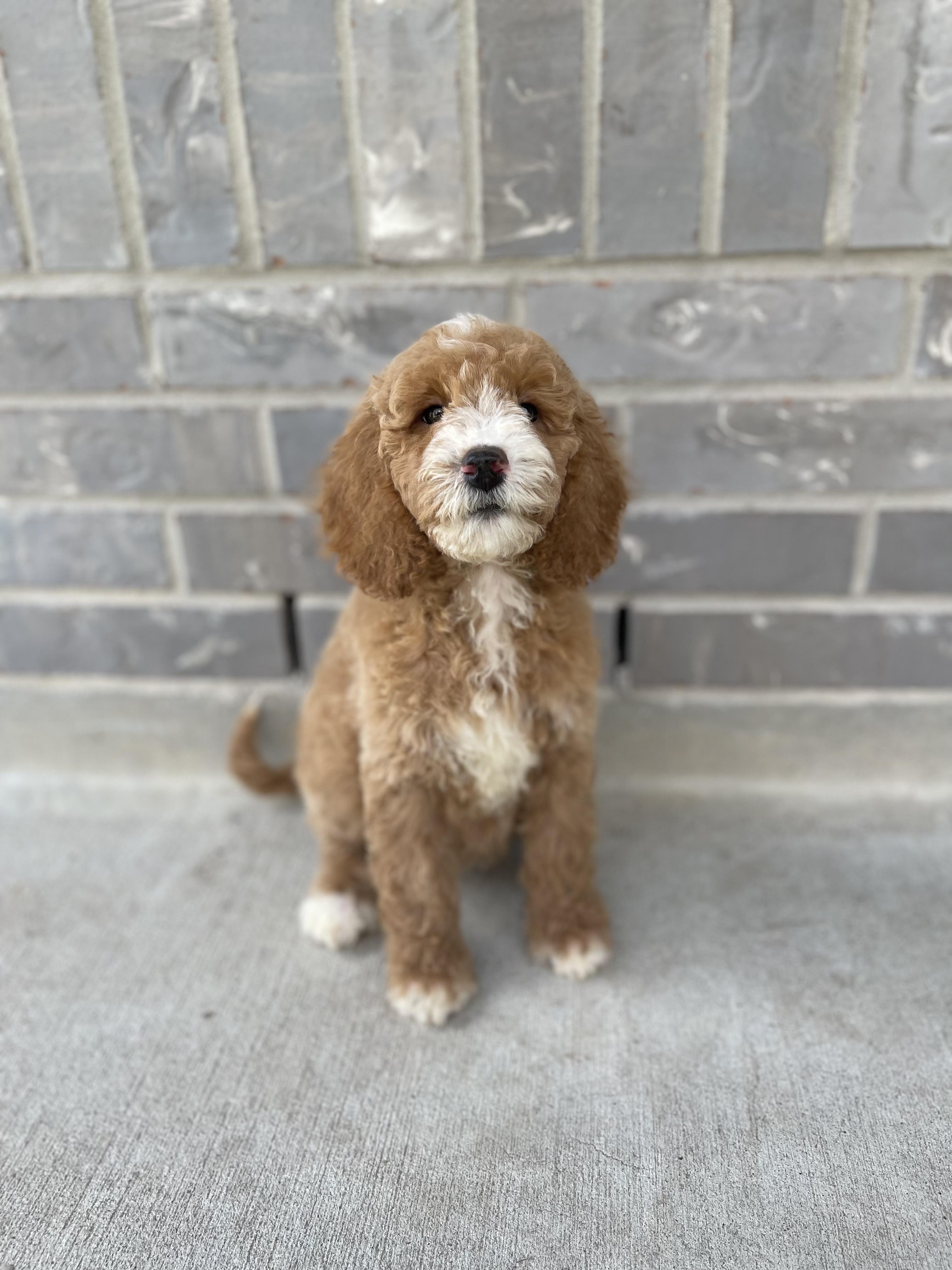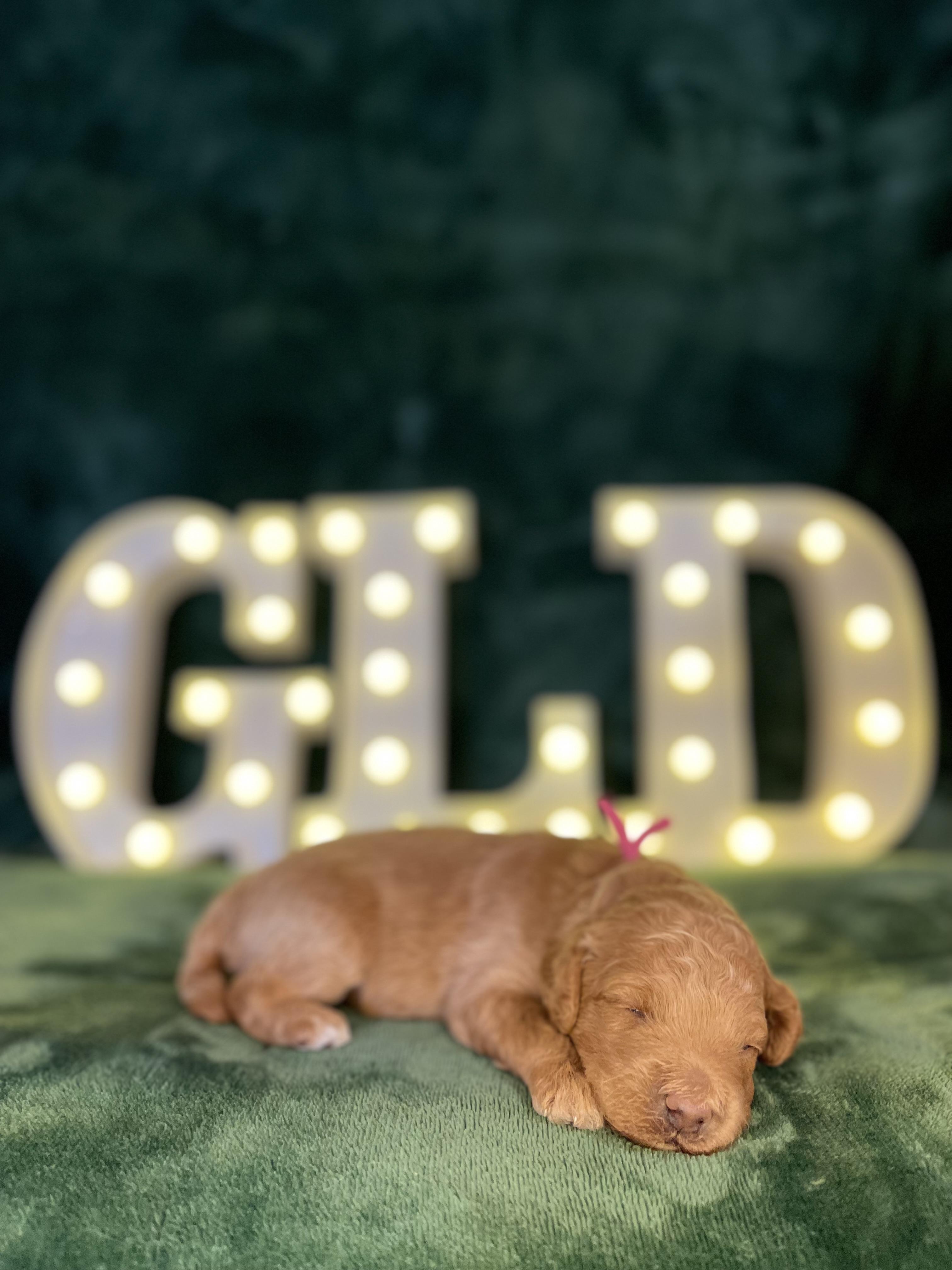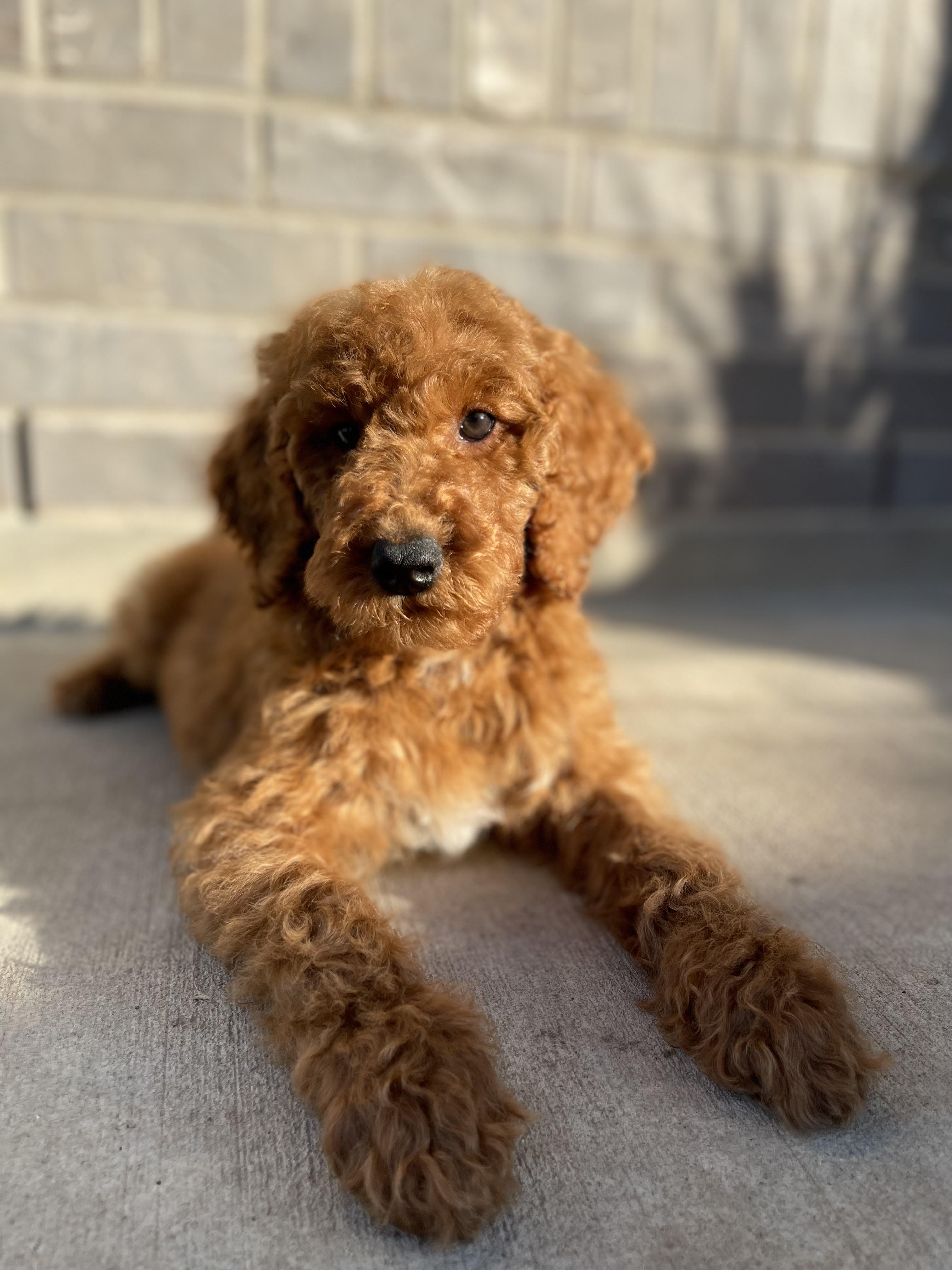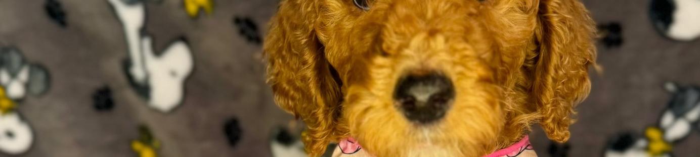 Brooklyn is a bubbly girl who enjoys playing fetch and sunbathing. Brooklyn is an extremely obedient girl who enjoys training everyday and being rewarded for her awesome behavior! Aside from being a good girl Brooklyn also has a phenomel boxy structure that many seek from a Goldendoodle. She is also 100% Embark Clear and has OFA passing scores.