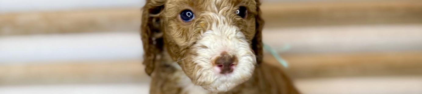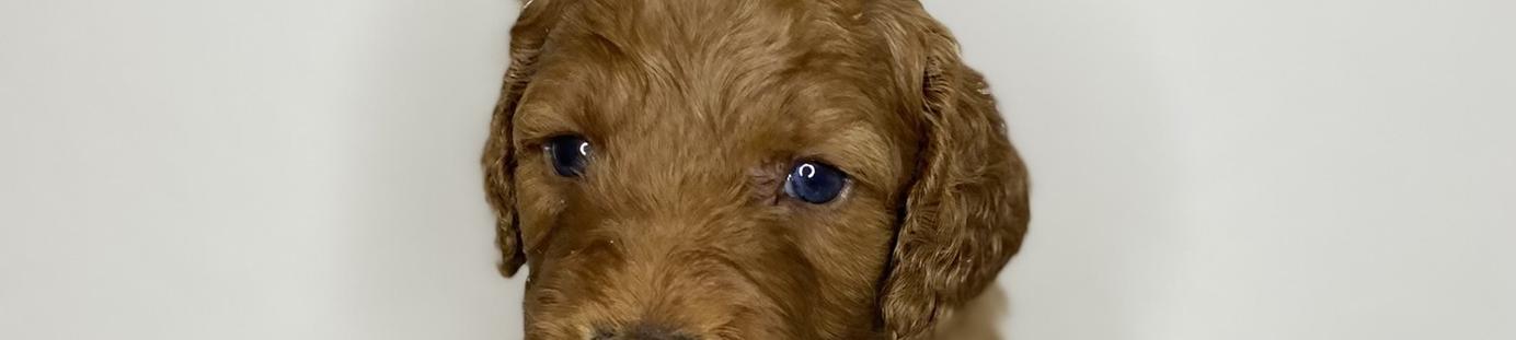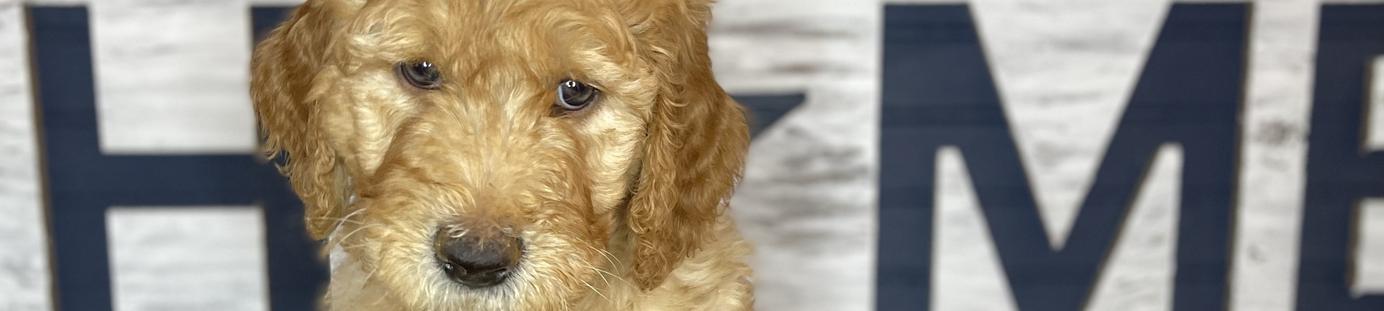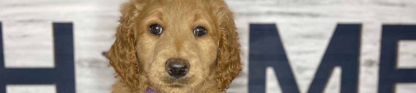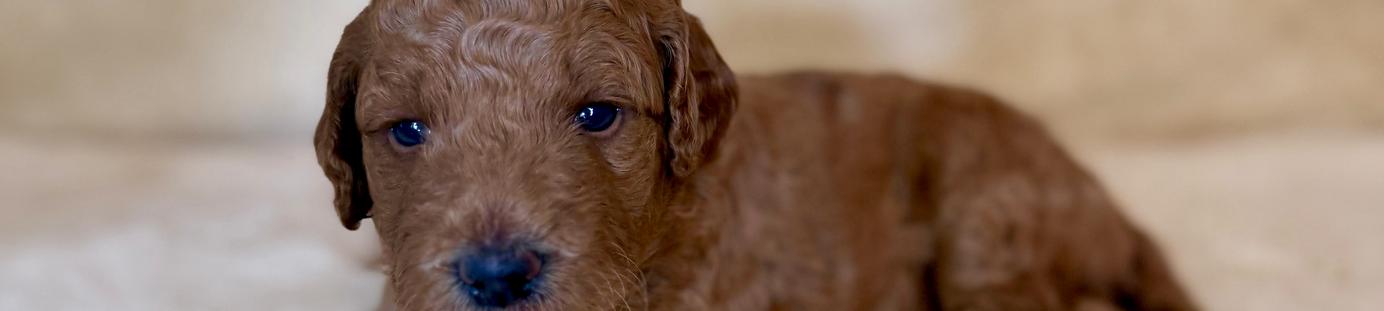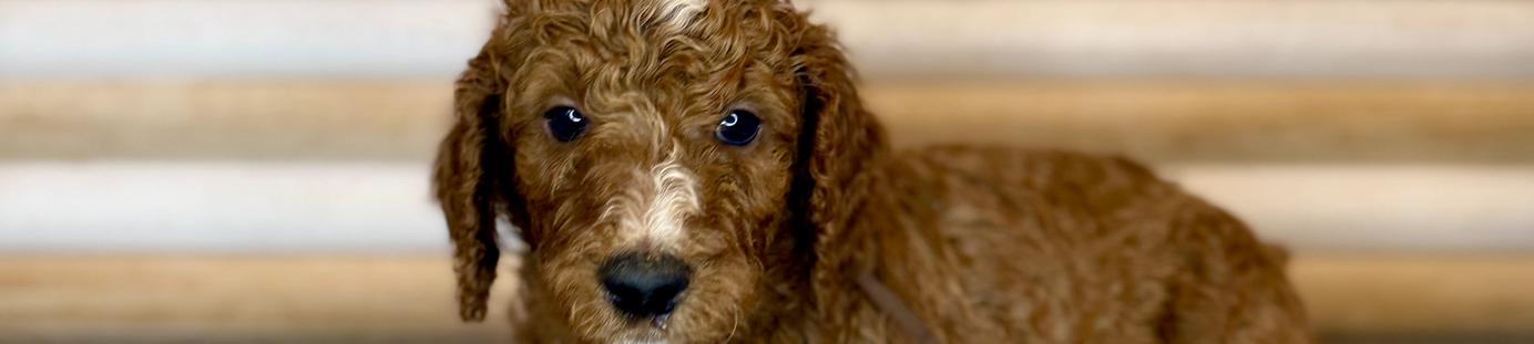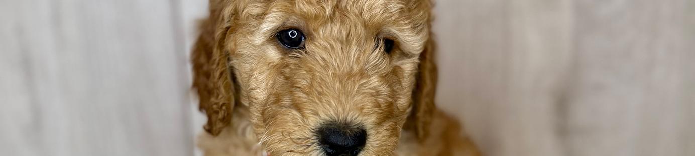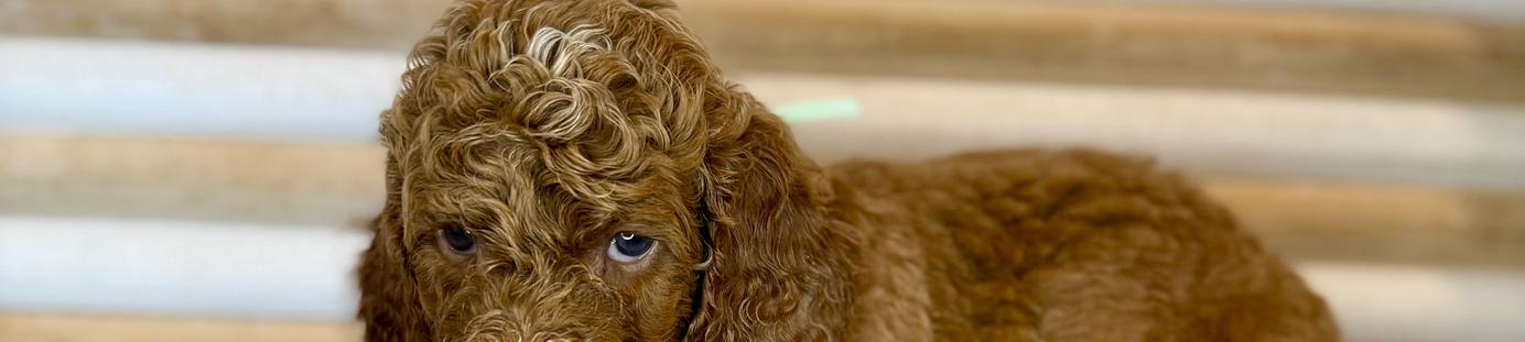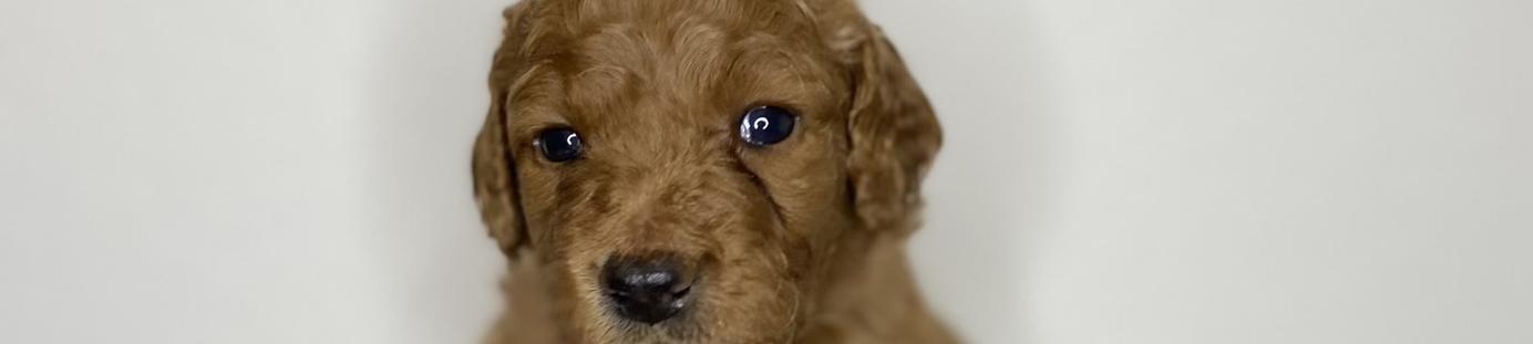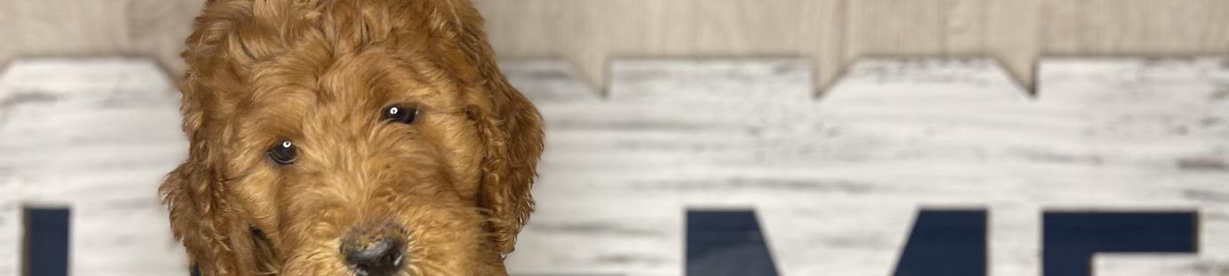 Our Goldendoodle puppies include cream, apricot, red, and parti. Colors will vary depending on the parent dogs.
