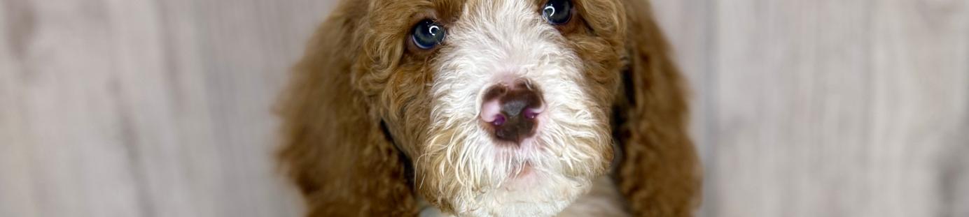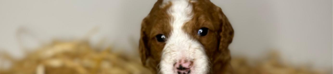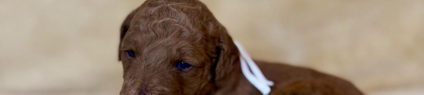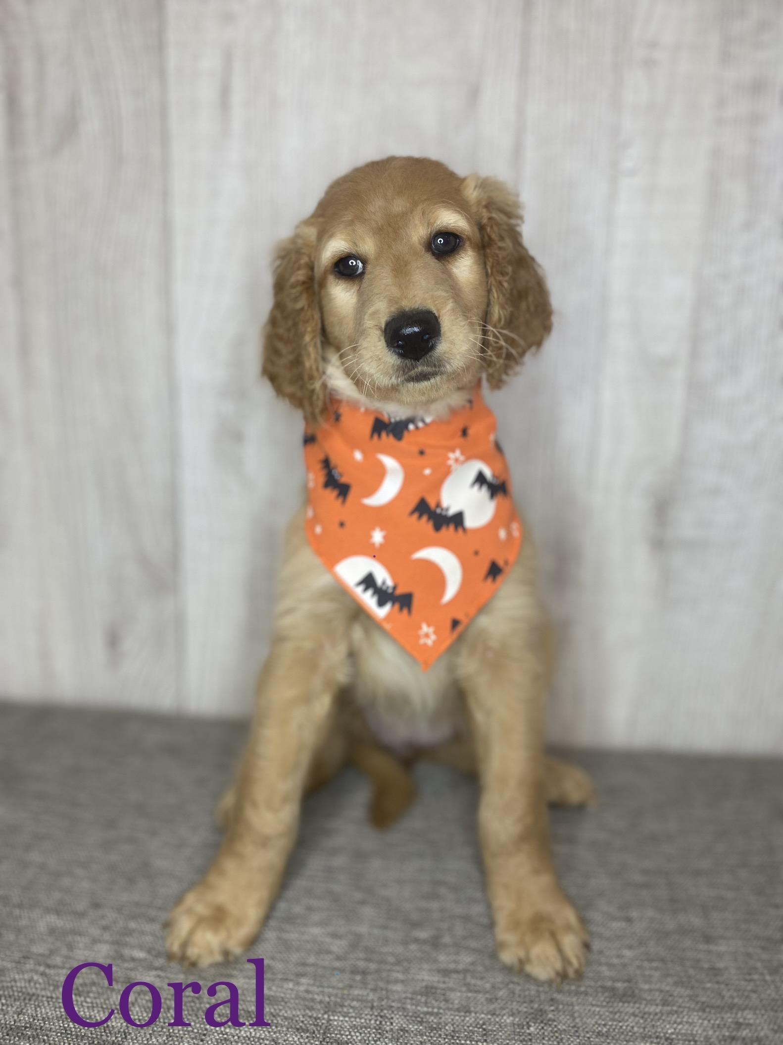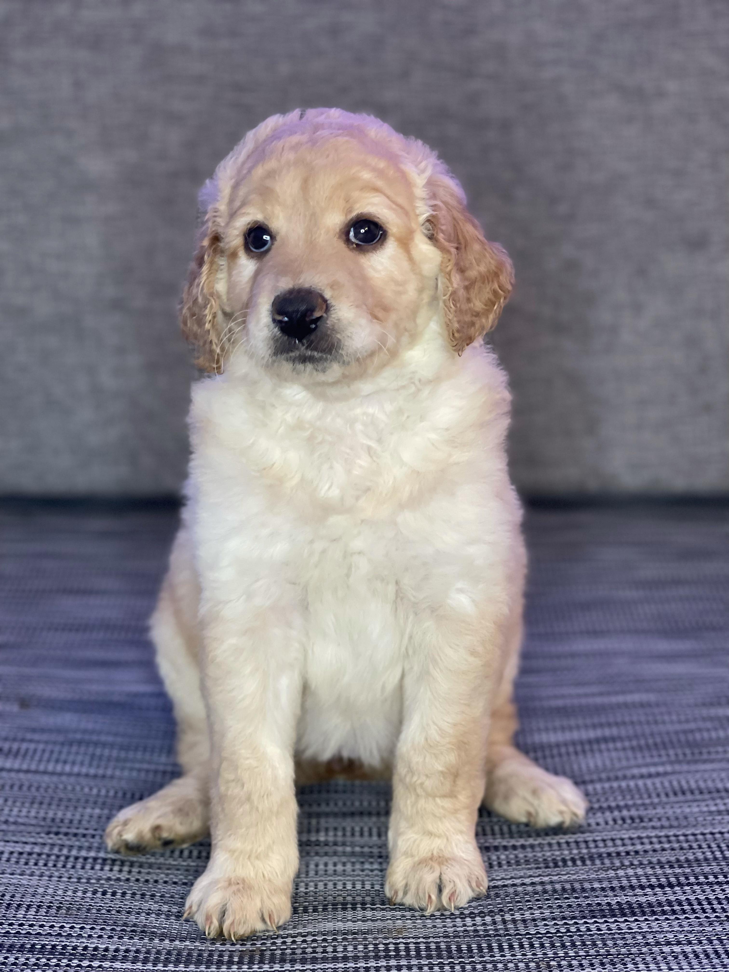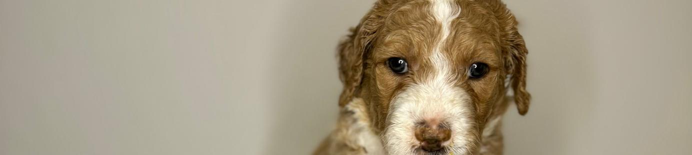 Our Goldendoodle puppies include cream, apricot, red, and parti. Colors will vary depending on the parent dogs.