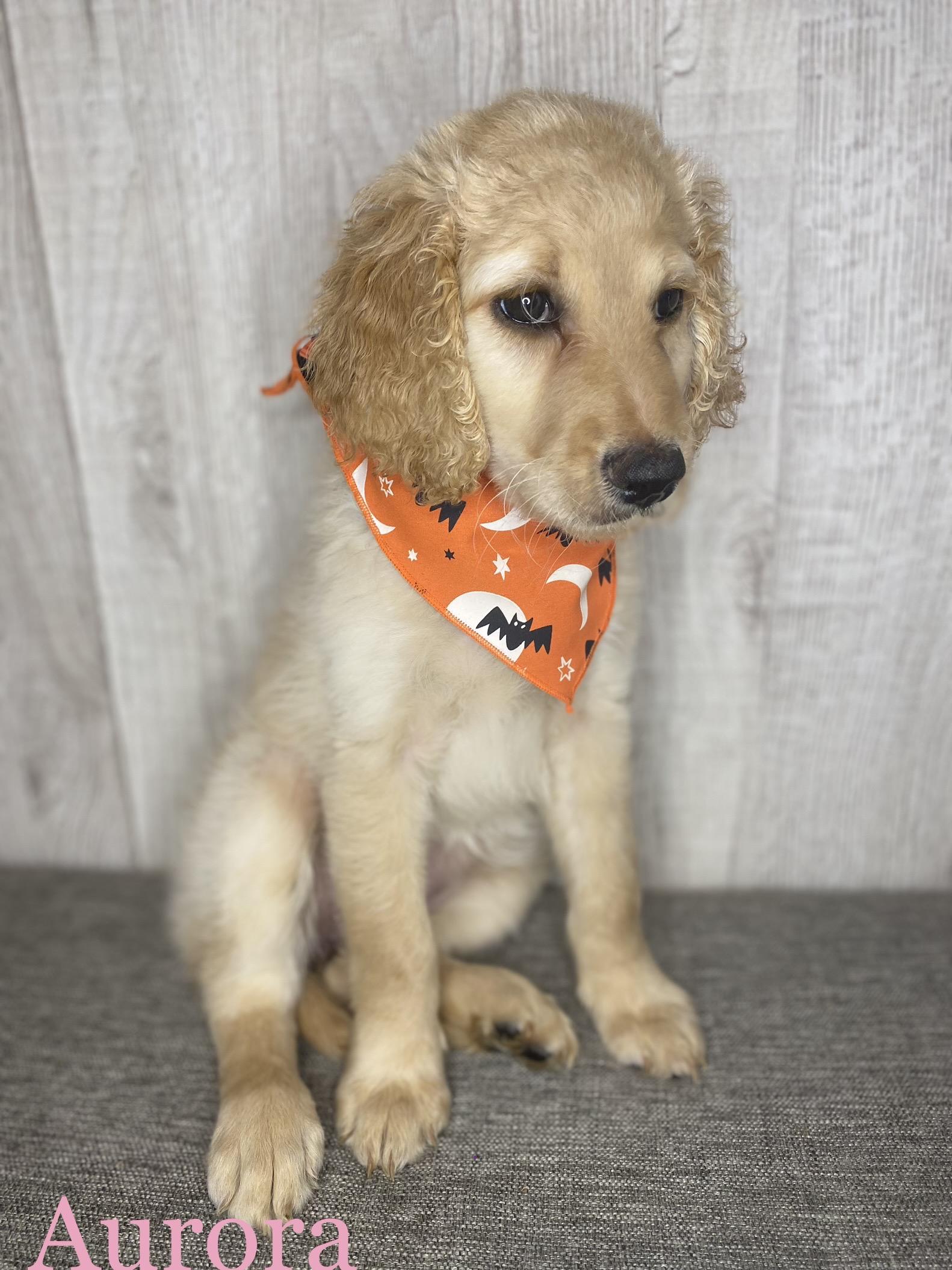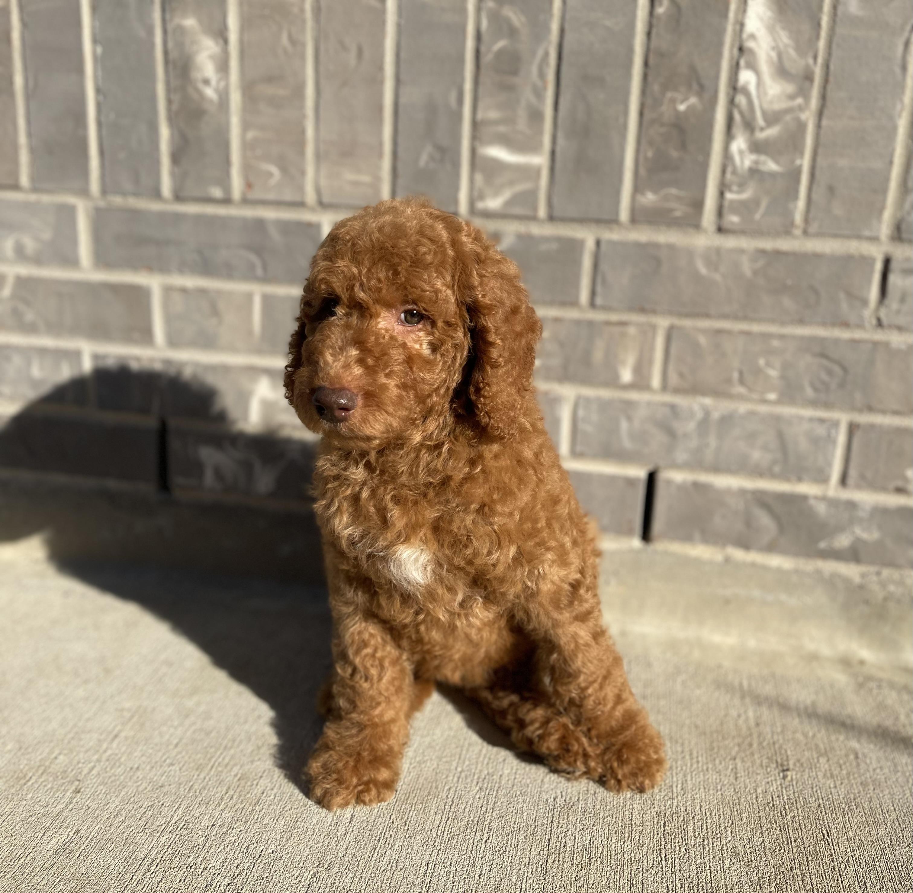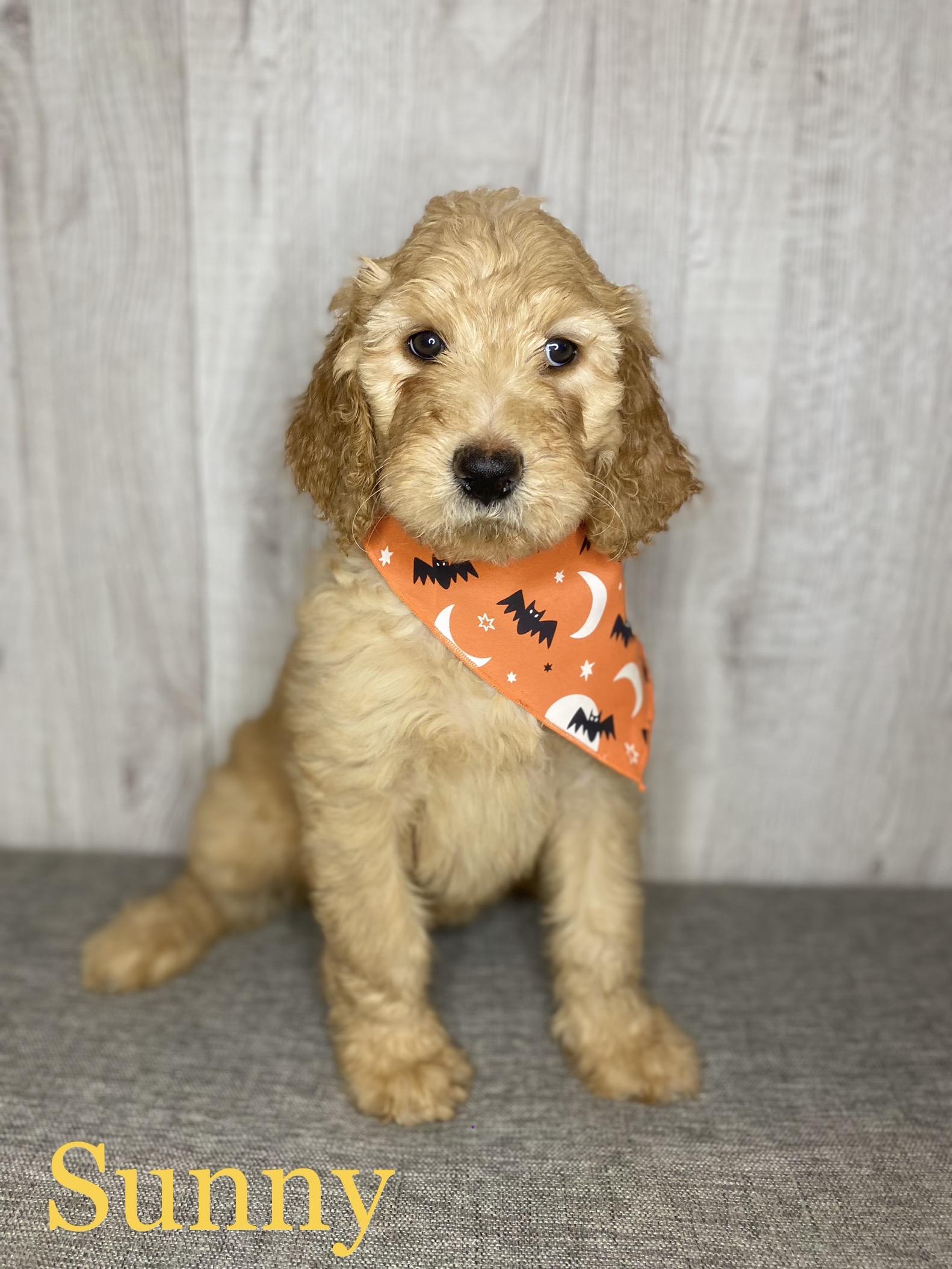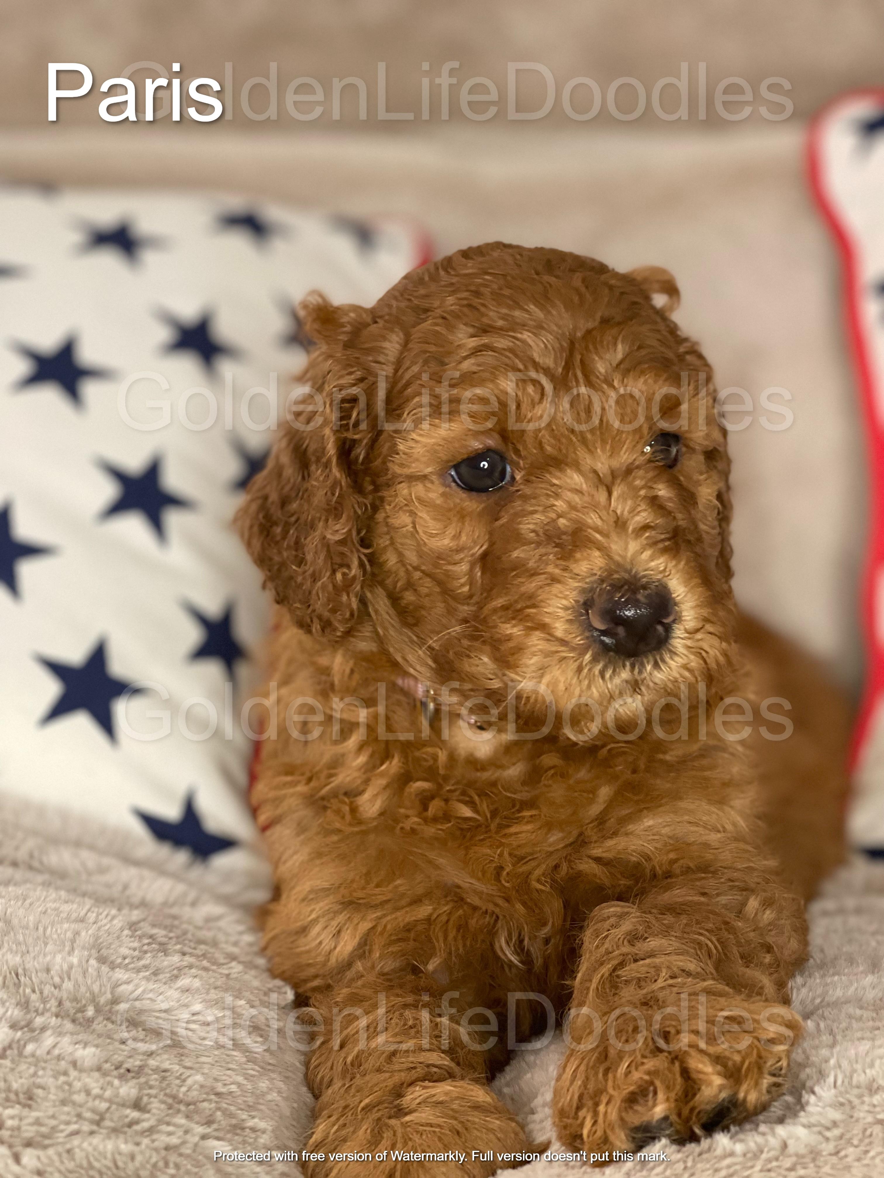 Our Goldendoodle puppies include cream, apricot, red, and parti. Colors will vary depending on the parent dogs.
