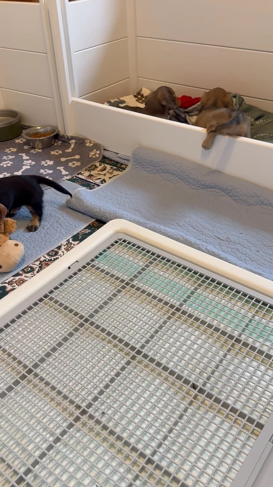 A day in the life… cleaning their box, brief crate work, & exploring their expanded home.