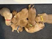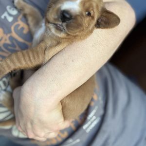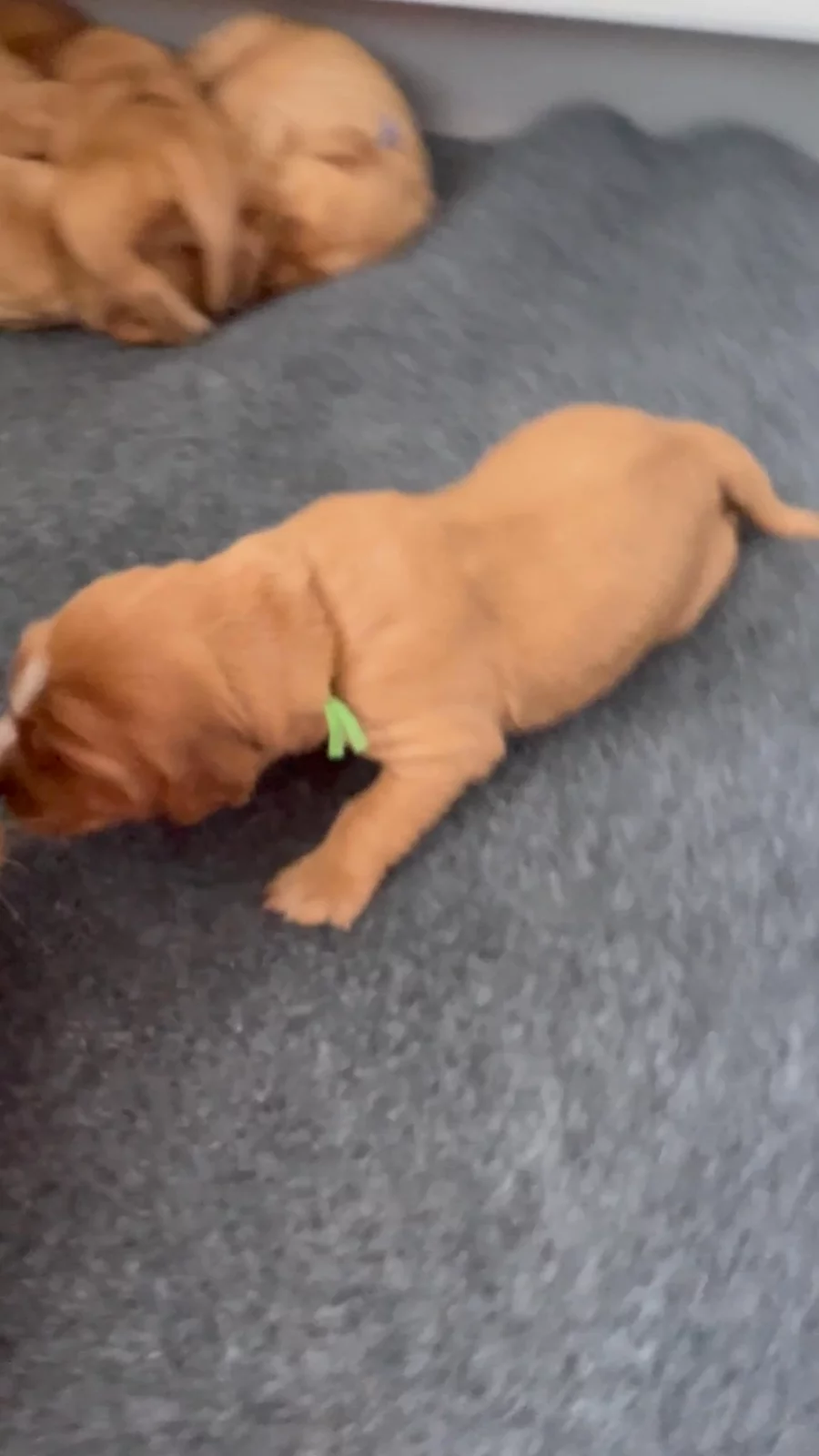 17 days old! Growing fast! 3 males still need to find their forever homes and each one of our puppies are absolutely perfect! Starting to take their first steps and eyes are almost all the way open! White they start using their vision and their ears open up to allow hearing, the world is getting very exciting to them! We even see them starting to play with each other and it is precious!