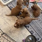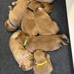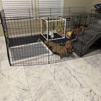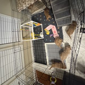4 weeks old! Got an upgrade from the whelping pens to a new area in the living room for extra socialization and also a fun outside area on our porch for sunshine and outdoor sounds! Getting very playful and still have one male looking for a home