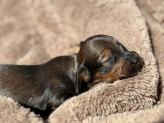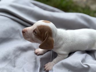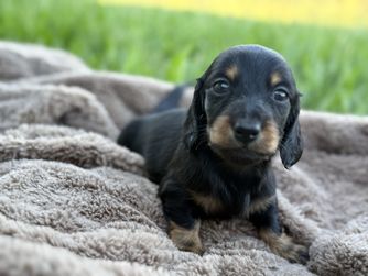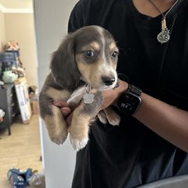 Carmen was an absolute gem and I cannot recommend her enough for anyone looking to add a fur baby to their life! I loved that Carmen put so much time and effort into getting our puppy ready to adjust to our home and she was so knowledgeable about dachshunds answering any question we had promptly. Some other key points of her program that I loved was the weekly pupdates and seeing our puppy change and grow. As well as the puppies being socialized with her children and her cat, which for me was a huge point in choosing Golden Paws Dachshunds. I truly believe her love for the breed and attention to detail made our experience an absolute dream.