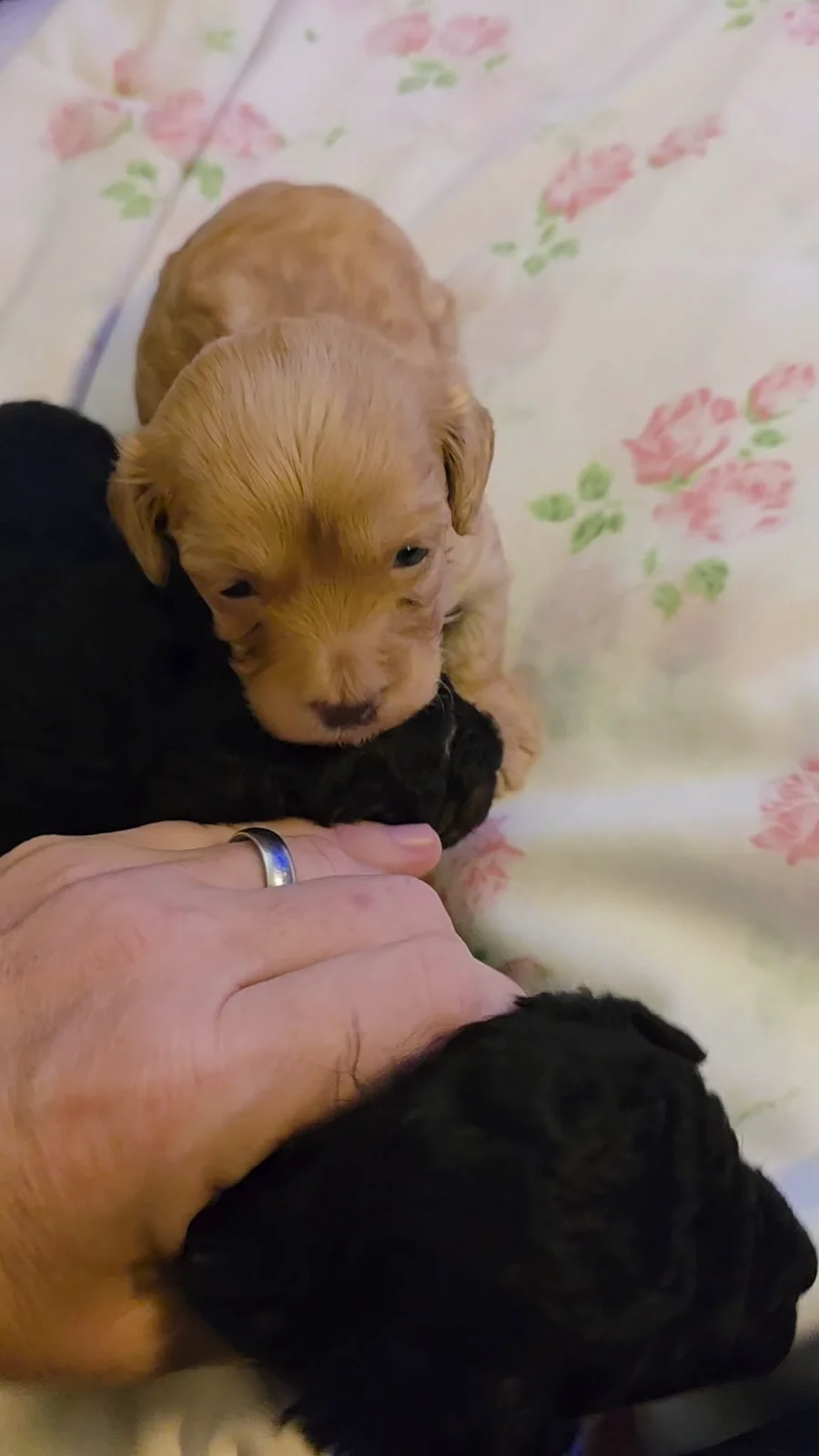 We truly hit the jackpot when we found Toni and our beautiful cockapoo buddy. From the moment we picked him up, we could tell he had received top-tier care. Toni has clearly put so much time, love, and dedication into raising her puppies. Our pup is incredibly smart and well-behaved. He was basically already crate trained when we brought him home on January 9th and has far exceeded our expectations. He has been sleeping through the night with zero accidents in his crate, which is amazing. Just yesterday and today, he started using the bathroom outside in our fenced yard all on his own—going to the same spot without any prompting. He hasn’t even used his puppy pad since early this morning, and we couldn’t be prouder of him. We are beyond thankful for Toni and the incredible start she gave our puppy. We would absolutely recommend her to anyone looking for a healthy, well-cared-for, and intelligent puppy.