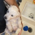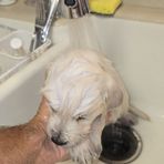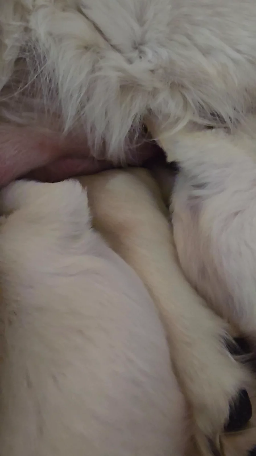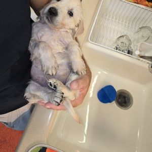 Eating puppy mush. Drinking water..walking all over..playful with each other. Bathed,brushing.nails clipped..healthy. loving babies.