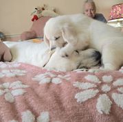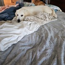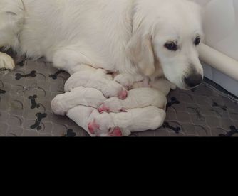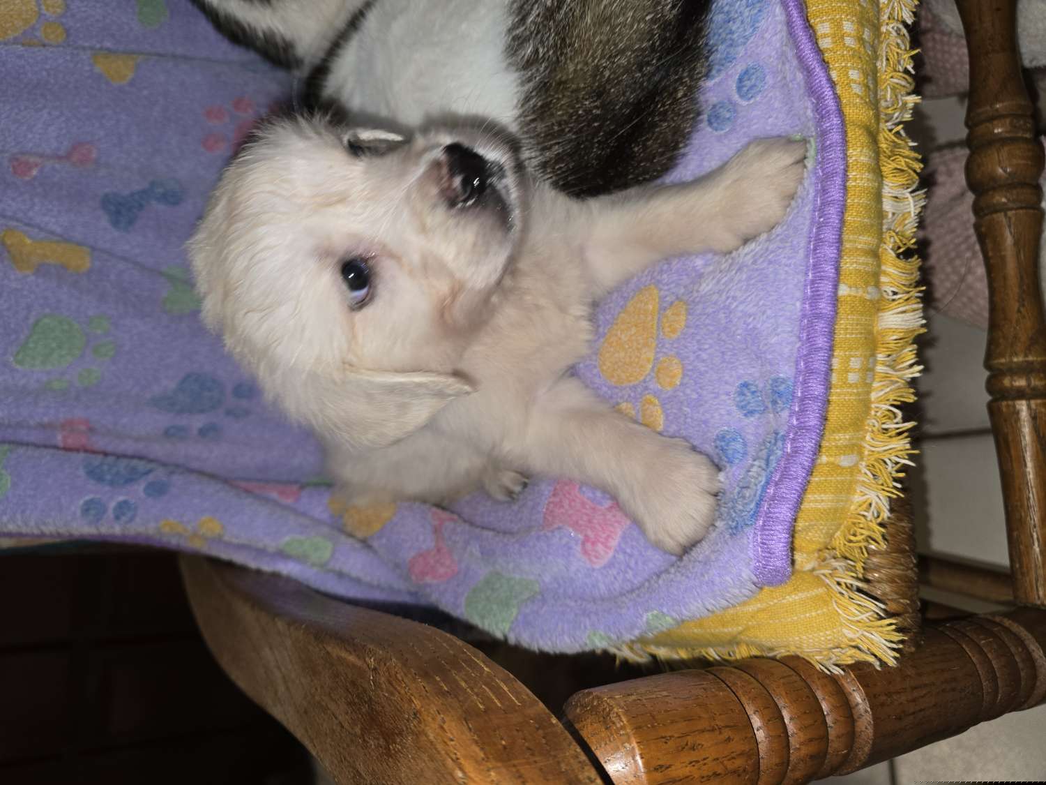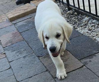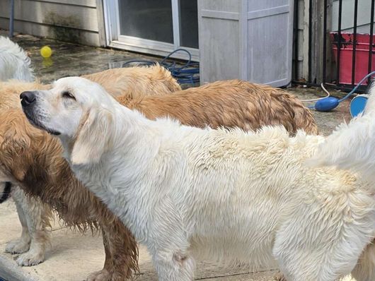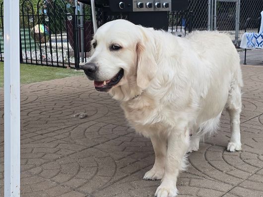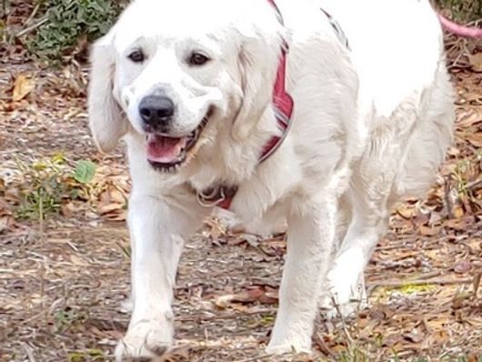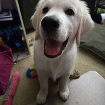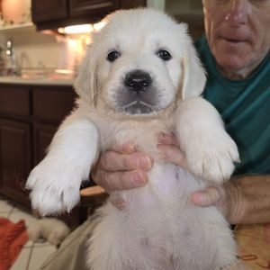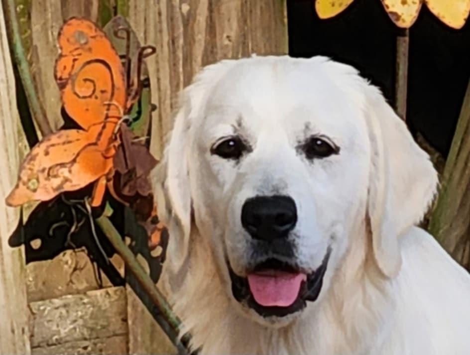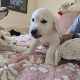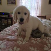 Beautiful, quiet,well mannered young female white with flat hair coat.loves attention from her humans.loves to swim in our pool & loves her golden family..