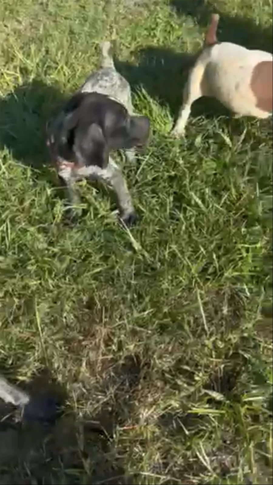 Trigger is a kind hearted, loyal best friend, and fierce hunting partner. He will cuddle up on the couch with the kids & other pets, but doesn’t miss a chance to hunt when dad’s in camo. He will hunt dry land birds, blood trail wounded game, track deer, and his personal favorite, retrieve waterfowl. He’s everything you can ask for in a pet and hunting partner.
