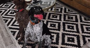 Honey lives up to her name. She’s sweet, independent, and keeps the household in check. She is calm (I know, crazy for a GSP), and loves to lounge around the house as long as you do. Her personality is the perfect balance for a GSP.