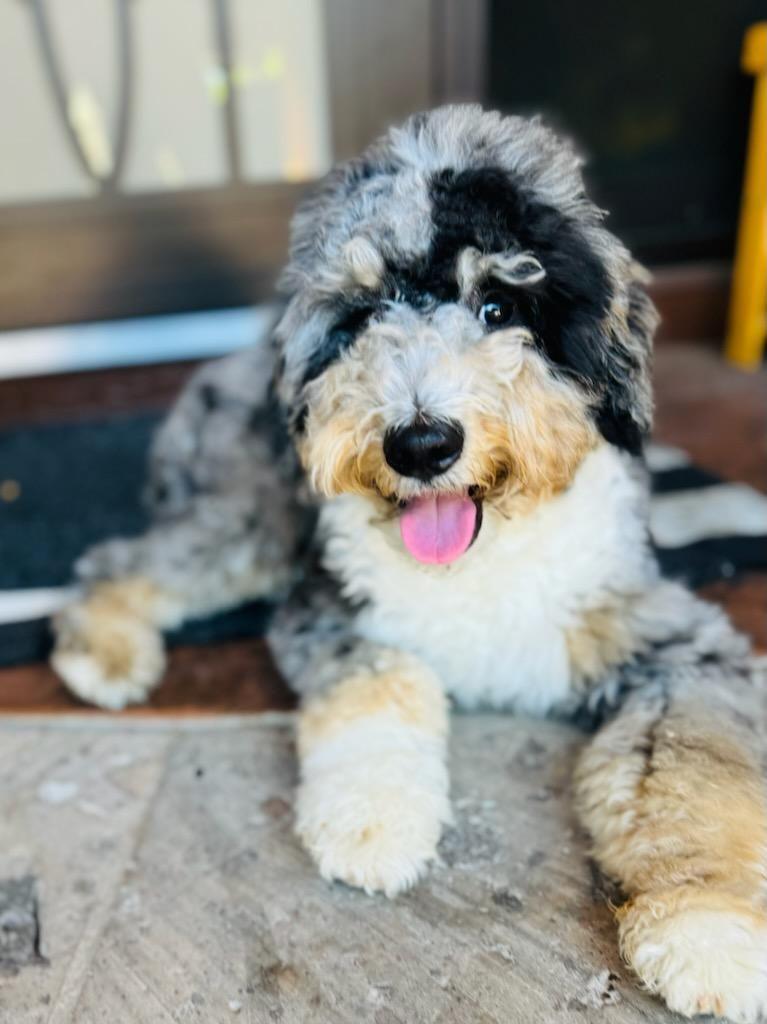 Our Bernedoodle puppies include brown, tri-color, phantom, blue merle, and merle. Poodle puppies include apricot, black, brown, cafe au lait, parti, phantom, and brindle. Goldendoodle puppies include red, black, and merle. Colors will vary depending on the parent dogs.