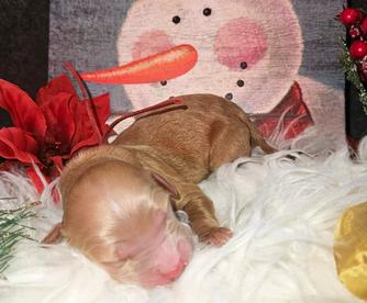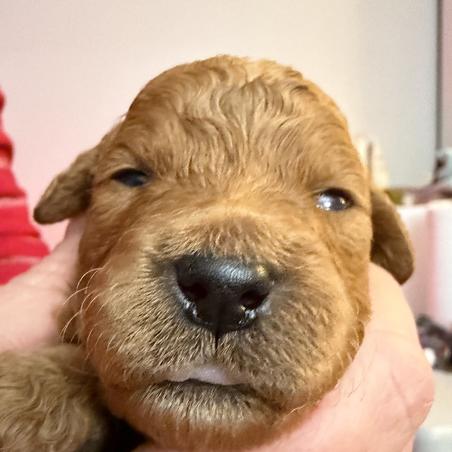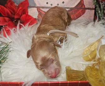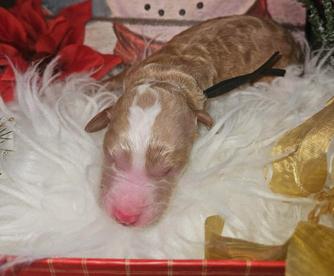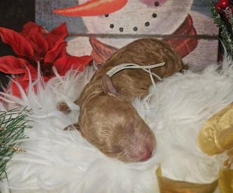 I have been looking for the right companion canine for the last two years. I finally settled on a Goldendoodle and then the search for the right breeder commenced. In the middle of all of that, due to my ASD 1 symptoms, I needed to find the right coat colors, marking patterns, temperament and emotional intelligence. I had a lot of questions and Brenda was patient, thoughtful, considerate, patient and helpful each step of my journey. I finally found the perfect dog for me and my family. When we went to pick him up, my wife was sure this would not work out and we were not ready for a puppy, even to the point of asking Brenda of the return process. As soon as we met Teddy (formerly Hopper), my wife fell in love with him. We properly socialized him with our other dog, female Cheweenie, who is a nervous aggressive and now they are good friends. Kind of like mother and red-headed stepson! We've already started training with Teddy and we are working with him on the basics, but in truth, he came to us as the most mild-mannered, affectionate, thoughtful, quiet, friendly, loving puppy we could ever ask for. My wife has stated that he is the most un-puppy puppy she has ever seen. He has never messed in the house, we've started crating him nightly and he has never had any accidents or chewed on anything he wasn't supposed to. Through this whole process, Brenda has stayed engaged and we've shared photos and videos. My wait and search has ended with Goldendoodle Baby. We have already recommended her to others in the local area and we can recommend Brenda and Josh to you as well.