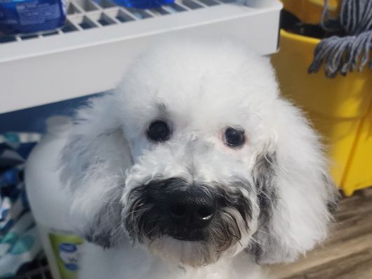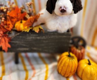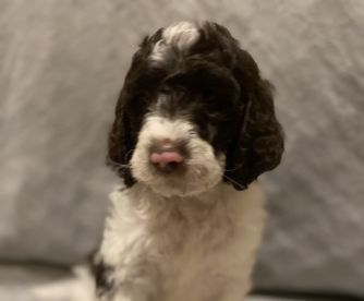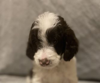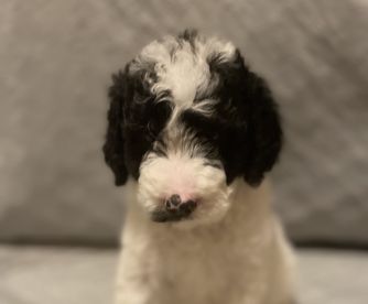 Smudge is a 17lb black and white parti poodle who is.AKC registered and health tested.