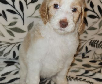 Our puppies include cream, apricot, red, merle, and parti. Colors will vary depending on the parent dogs.