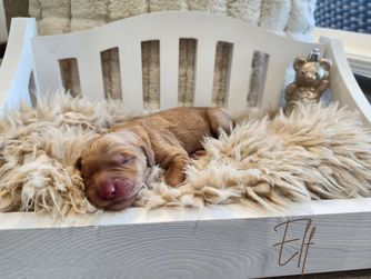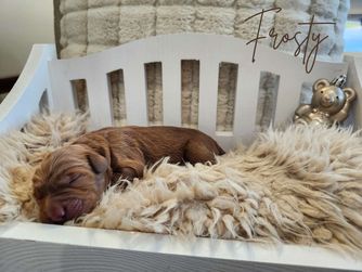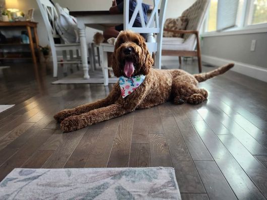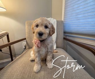 Riggs has a wonderful, calm temperament. He has a beautiful dark red coat. He has produced wonderful puppies. He is 60lbs, standard multi-generational Goldendoodle. Straight coat, 9/10 intense red.