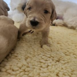 Charlie is a female Goldendoodle. Carefully selected as a great representative of her breed, Jacki decided to make her part of their program. Jacki has passed Good Dog’s screening process, which involved a review of their breeding practices, environment, and the mental and physical health of their dogs.