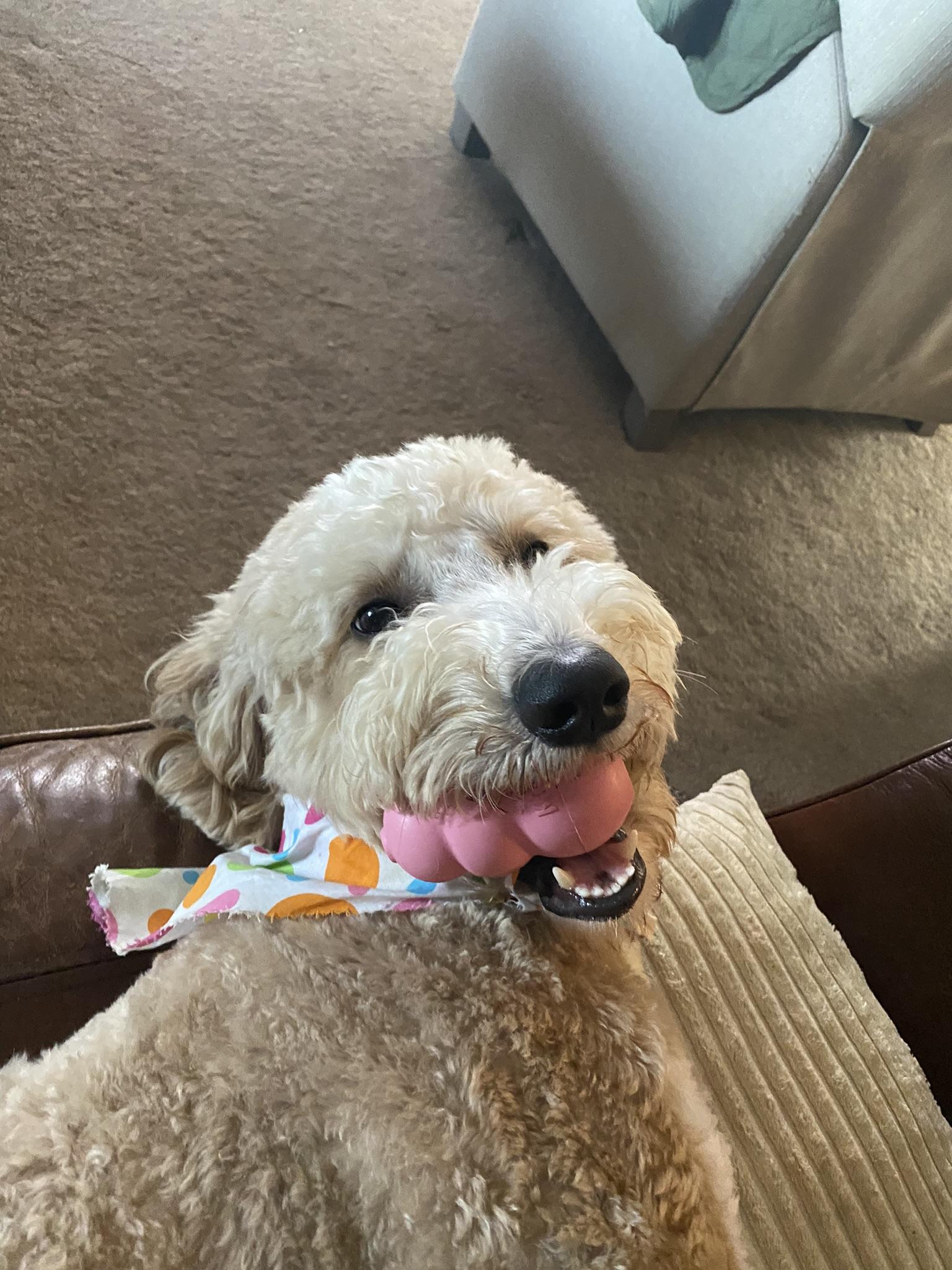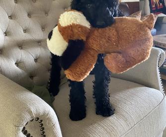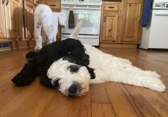 “All Doods are priced the same per litter. Multiple dewormings, dewclaw removal, microchipping, 1-2 sets of vaccinations, Trupanion starter insurance, AKC Reunite registration, and our health warranty. Transferable to a future litter one time. Non-refundable.”