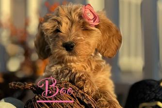Roxy is our 13 pound F1 petite mini goldendoodle. Roxy may be small in statute, but her heart and athleticism can't be bought. She is a hard core baller! She will get those tennis balls regardless of their whereabouts.
