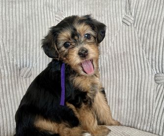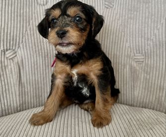 Our Goldendoodle puppies are parti. Yorkipoo puppies are blue and tan. Colors will vary depending on the parent dogs.