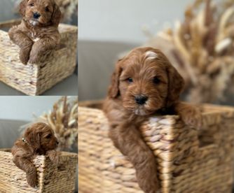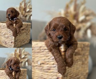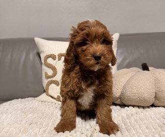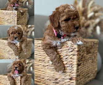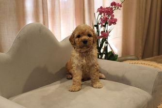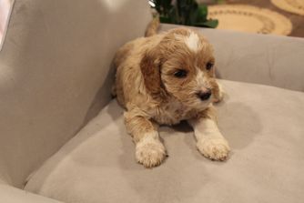Our puppies include cream, apricot, red, and parti. Colors will vary depending on the parent dogs.