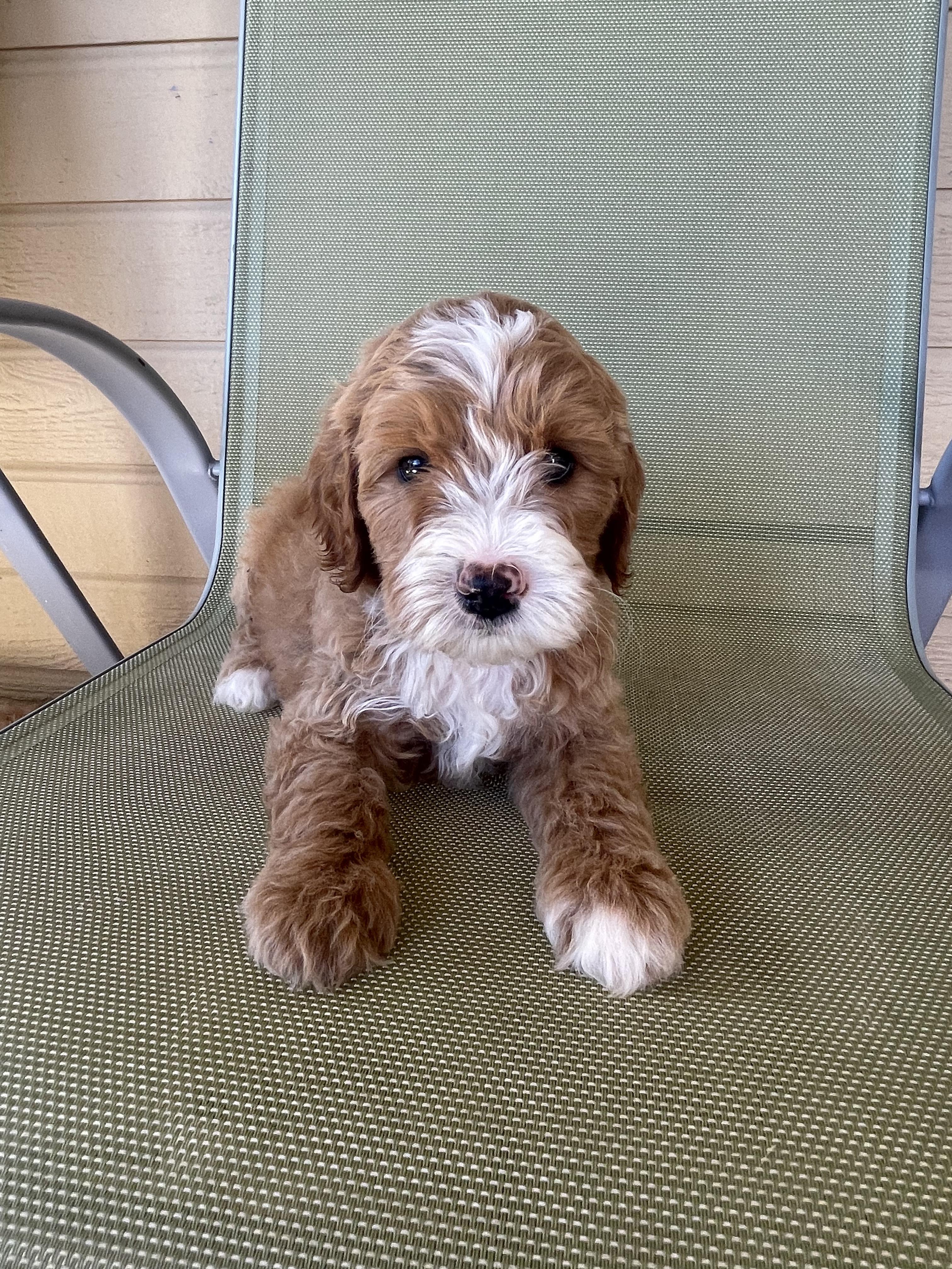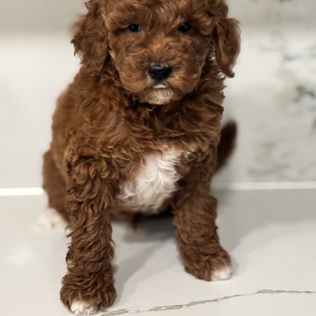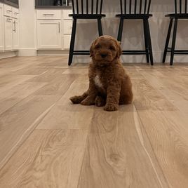 Lucas is a male Goldendoodle. Carefully selected as a great representative of his breed, Lyudmila decided to make him part of their program. Lyudmila has passed Good Dog’s screening process, which involved a review of their breeding practices, environment, and the mental and physical health of their dogs.