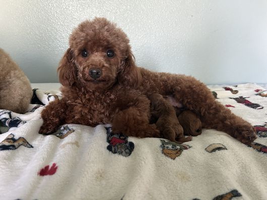 Teddy is a male Poodle. Carefully selected as a great representative of his breed, Alejandra decided to make him part of their program. Alejandra has passed Good Dog’s screening process, which involved a review of their breeding practices, environment, and the mental and physical health of their dogs.
