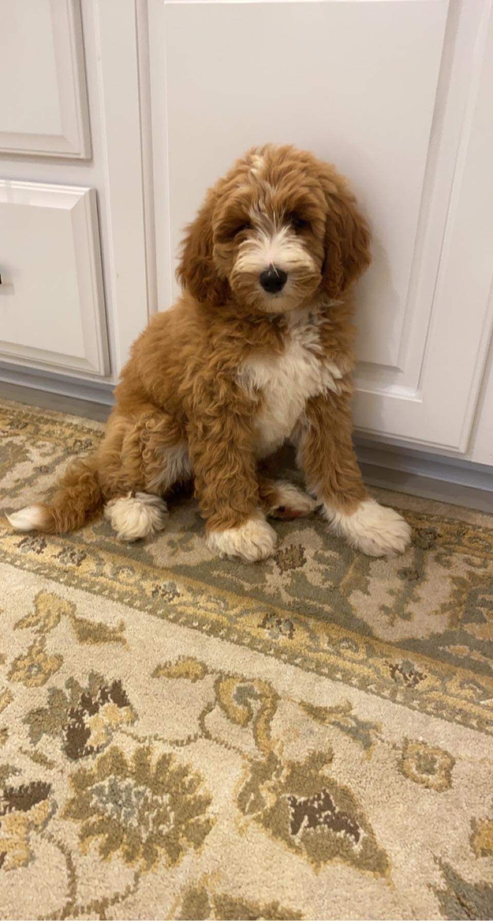 Annie is a female Goldendoodle. Carefully selected as a great representative of her breed, Benjamin decided to make her part of their program. Benjamin has passed Good Dog’s screening process, which involved a review of their breeding practices, environment, and the mental and physical health of their dogs.