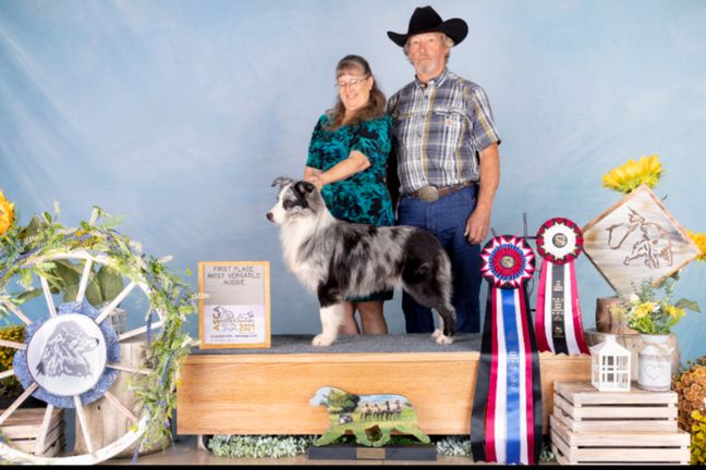 I'm LYNDA H., the breeder behind GOLDSTAR & HARDINS AUSSIES located in Whitsett, NC. I have been showing Aussies since the late '80s. I am a Senior Breeder Judge with ASCA. January 2019 I married my husband Rick who has been in Aussies just as long as I have, only with a focus on working ranch dogs and ASCA’s Stockdog program. He is a Stockdog judge with the ASCA, AKC, and AHBA.