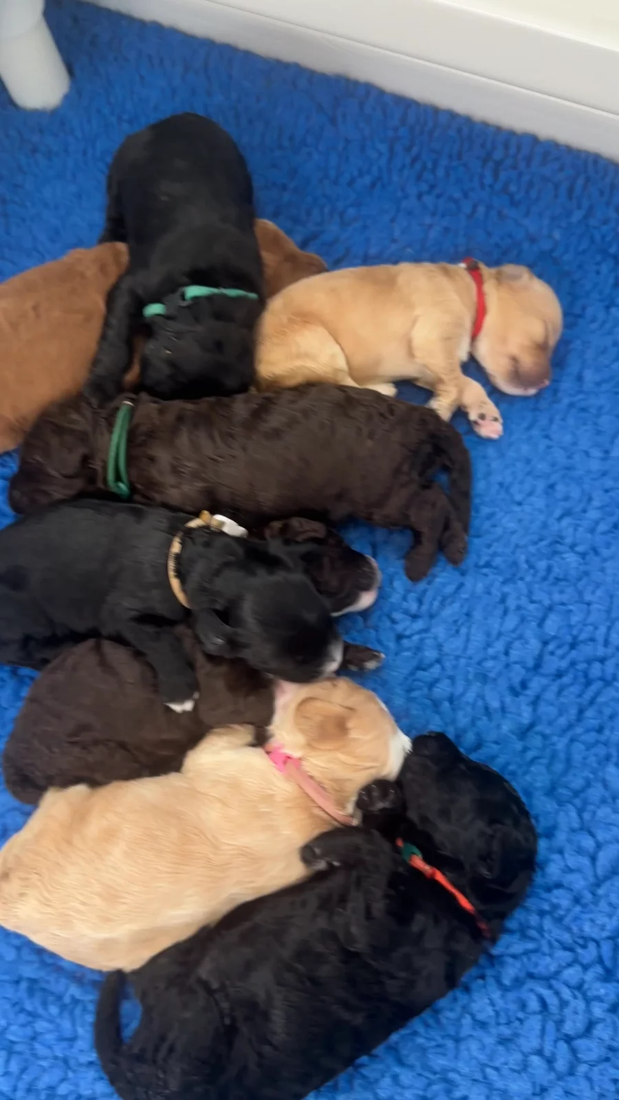 Our puppies include caramel cream, caramel red, apricot, chocolate, and black. Colors will vary depending on the parent dogs.