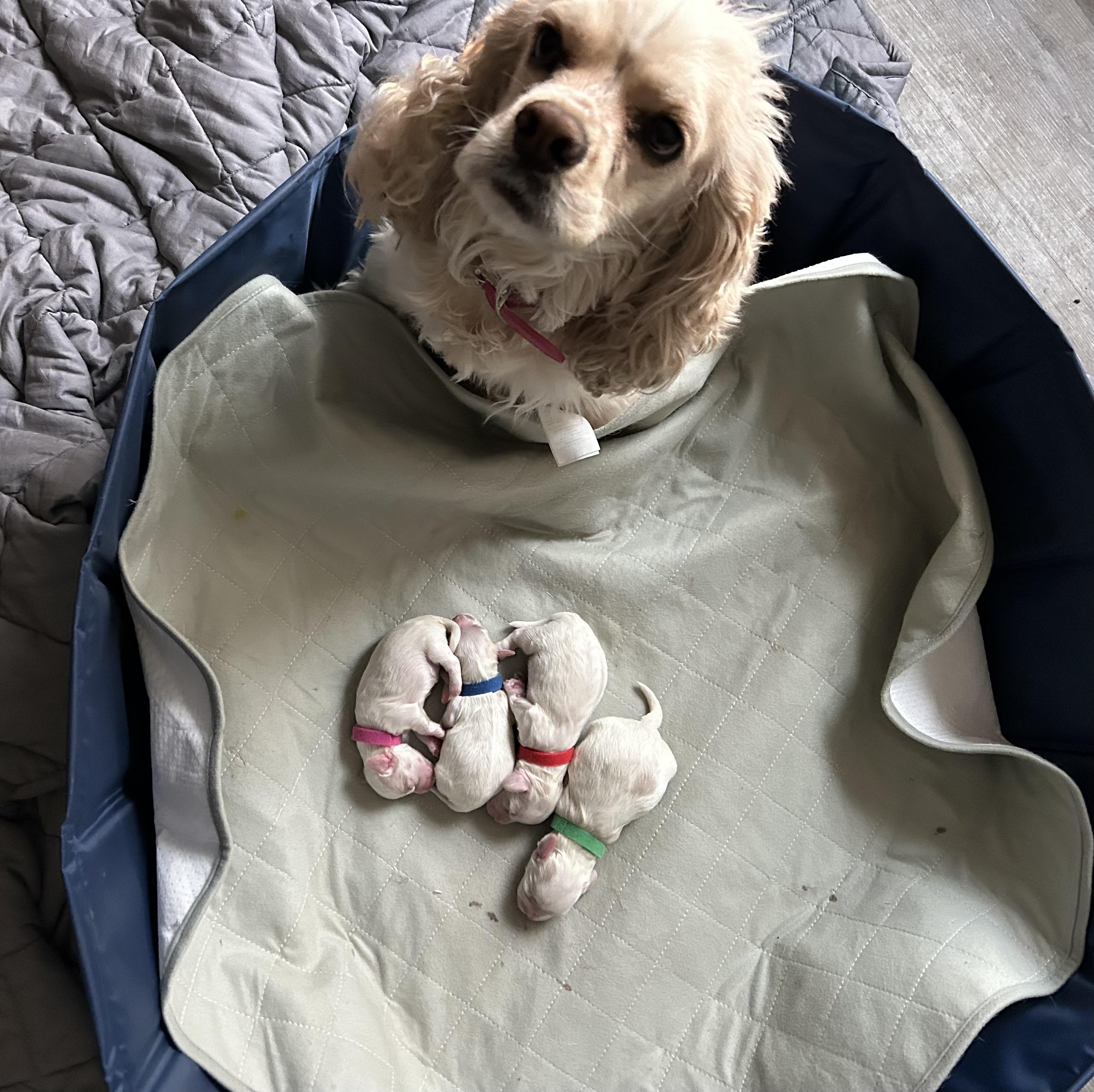 Pogue is a male Cockapoo. Carefully selected as a great representative of his breed, Molly decided to make him part of their program. Molly has passed Good Dog’s screening process, which involved a review of their breeding practices, environment, and the mental and physical health of their dogs.