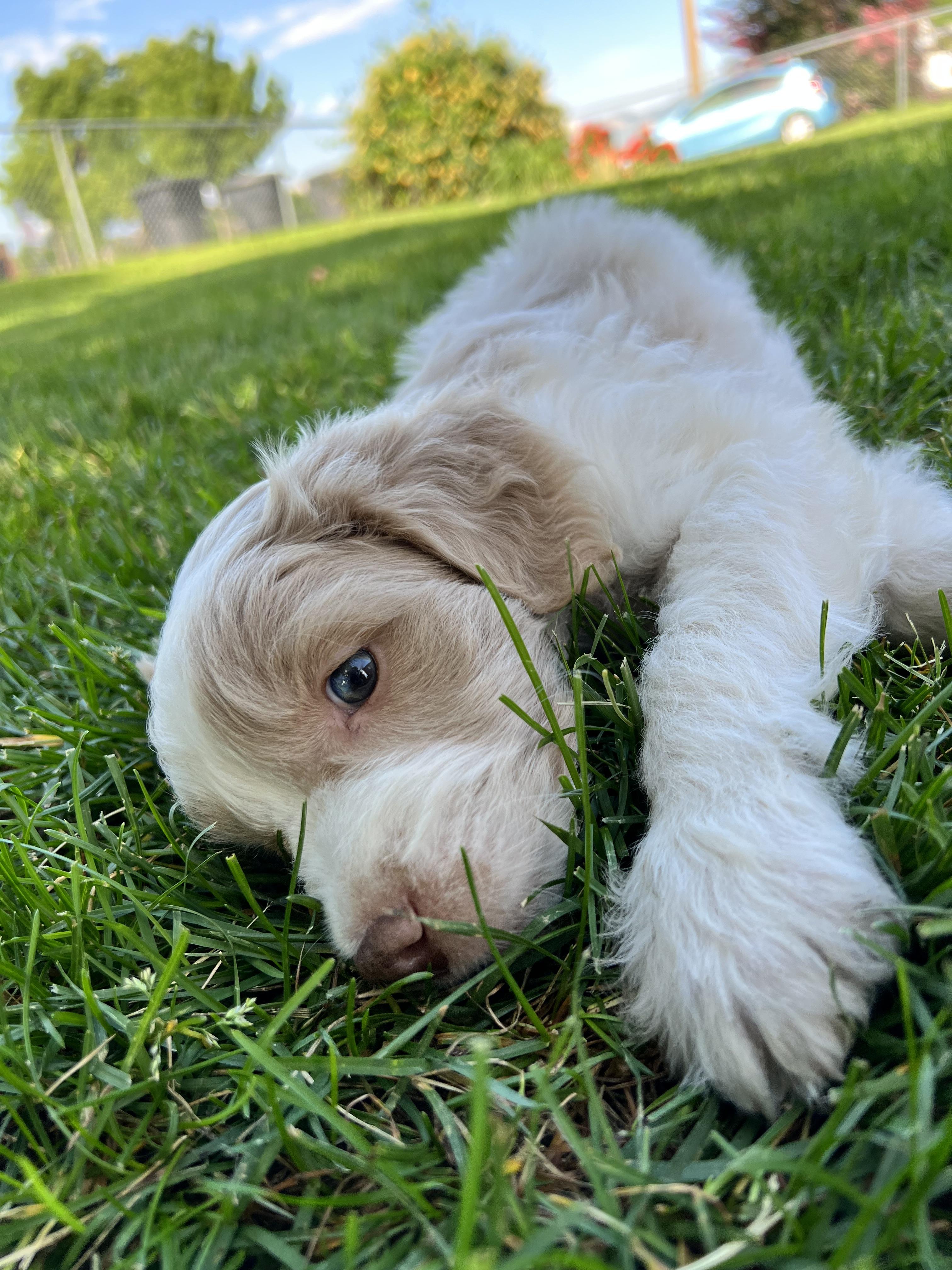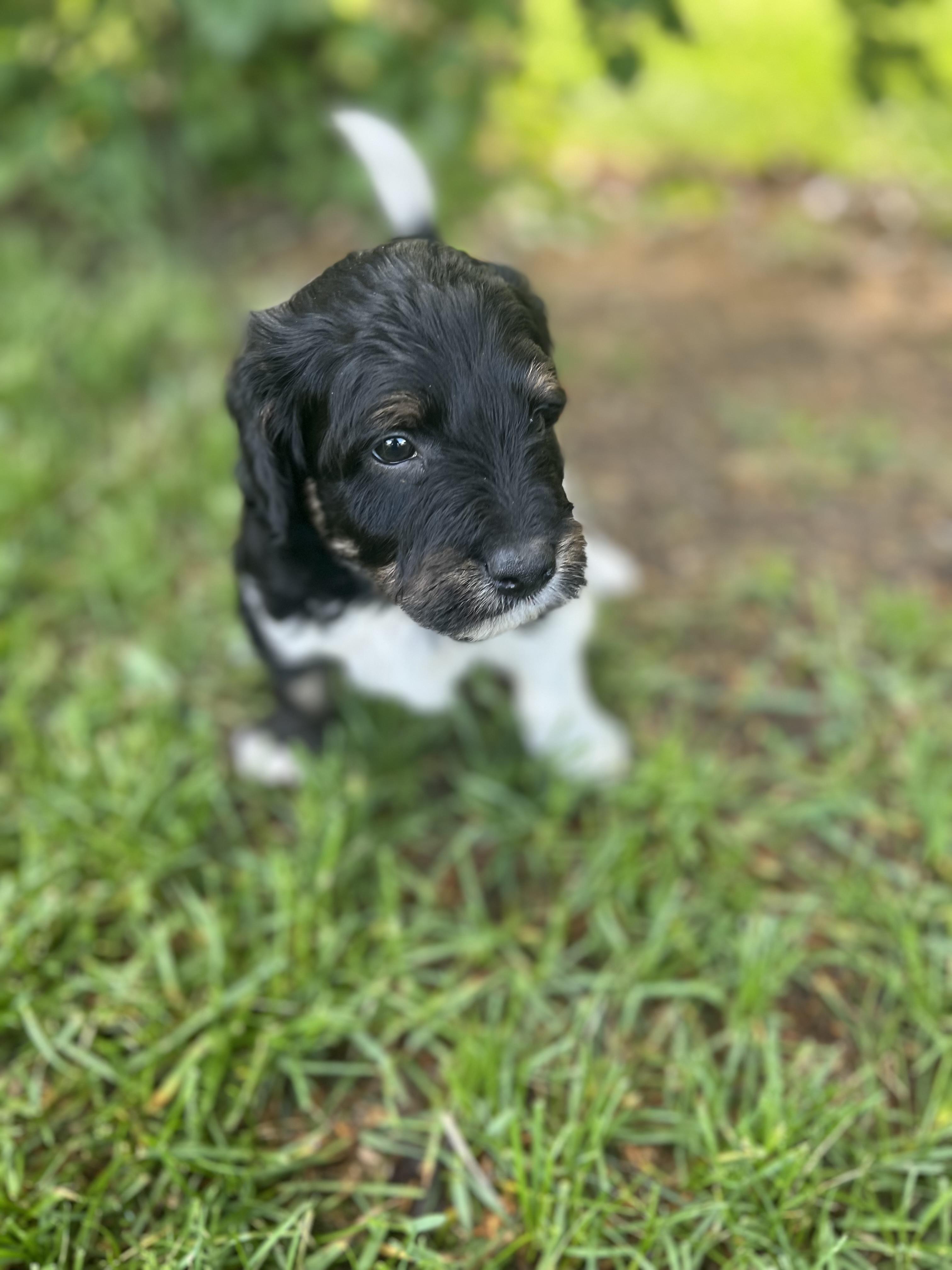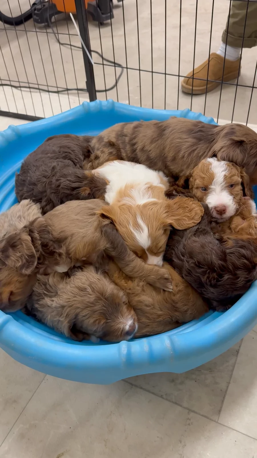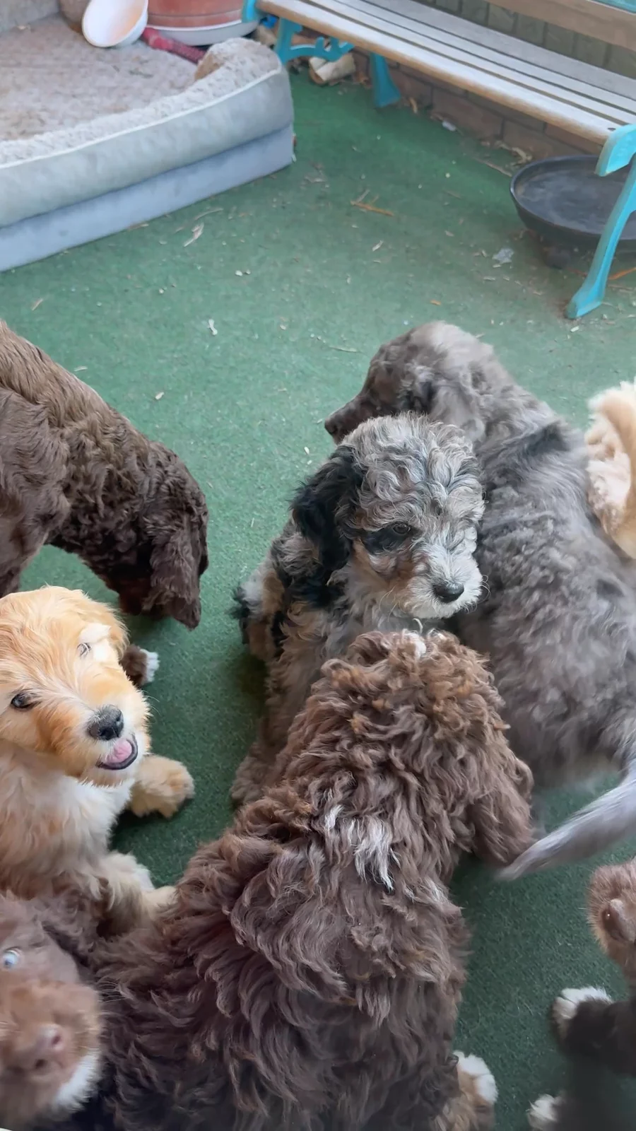 Our Bernedoodle puppies are tri-color. Cavapoo puppies include merle, blenheim, tri-color, red, and black and tan. Goldendoodle puppies include cream, apricot, merle, and parti. Double Doodle puppies include black and apricot. Colors will vary depending on the parent dogs.