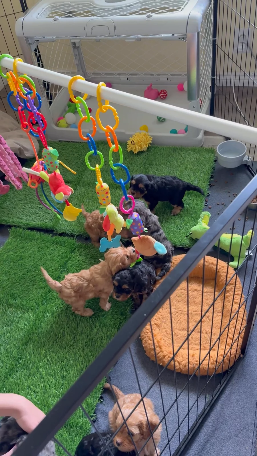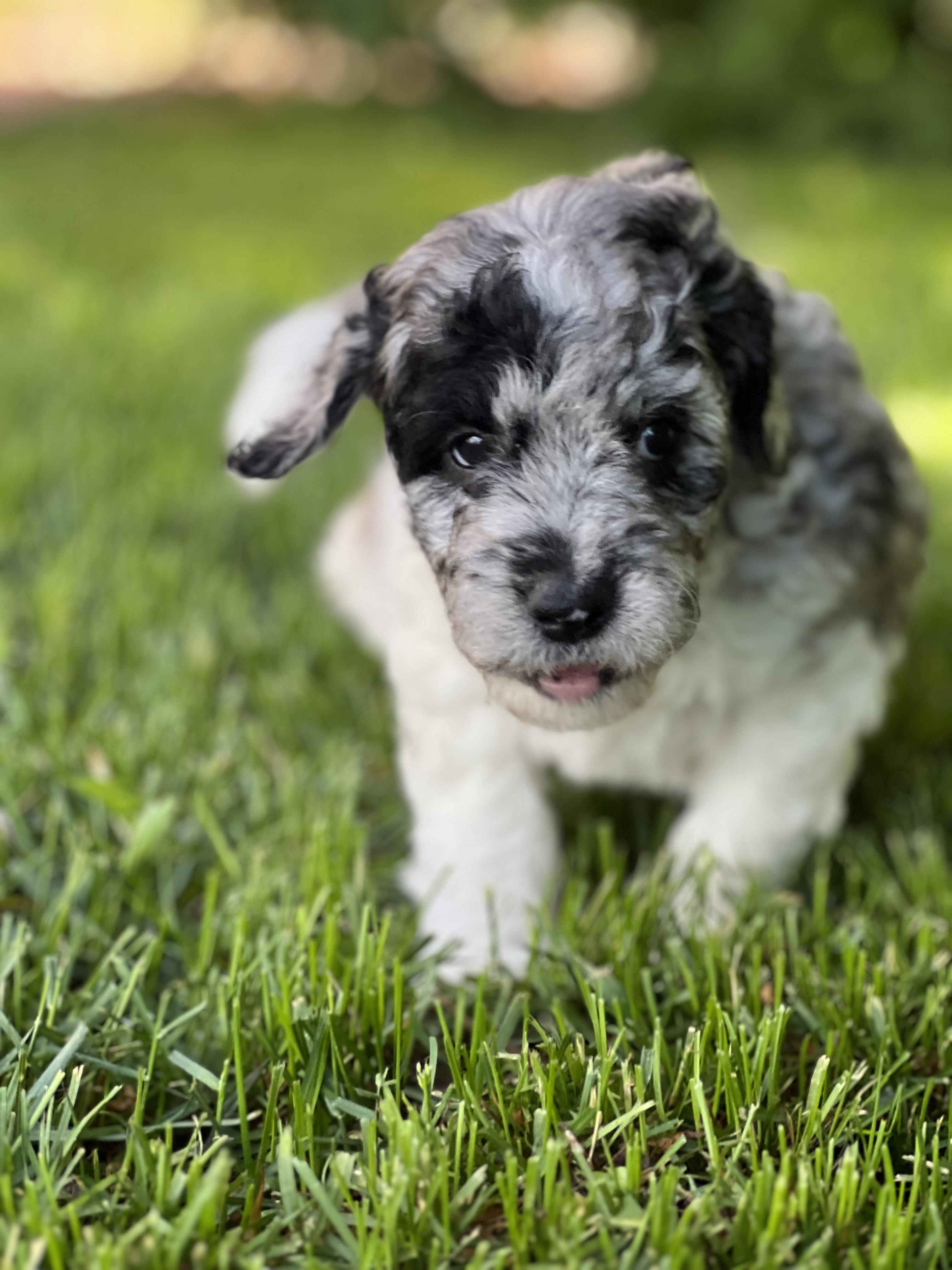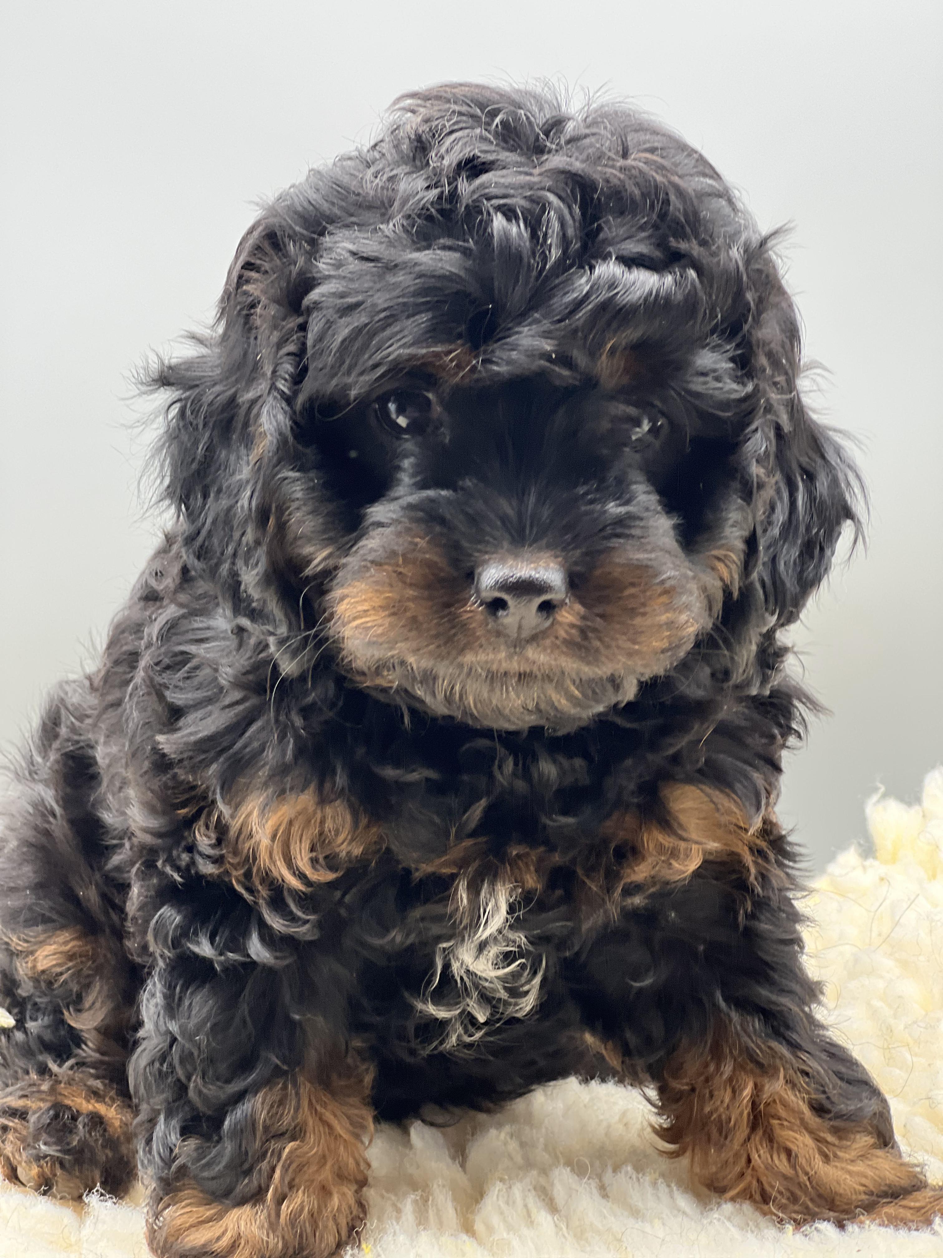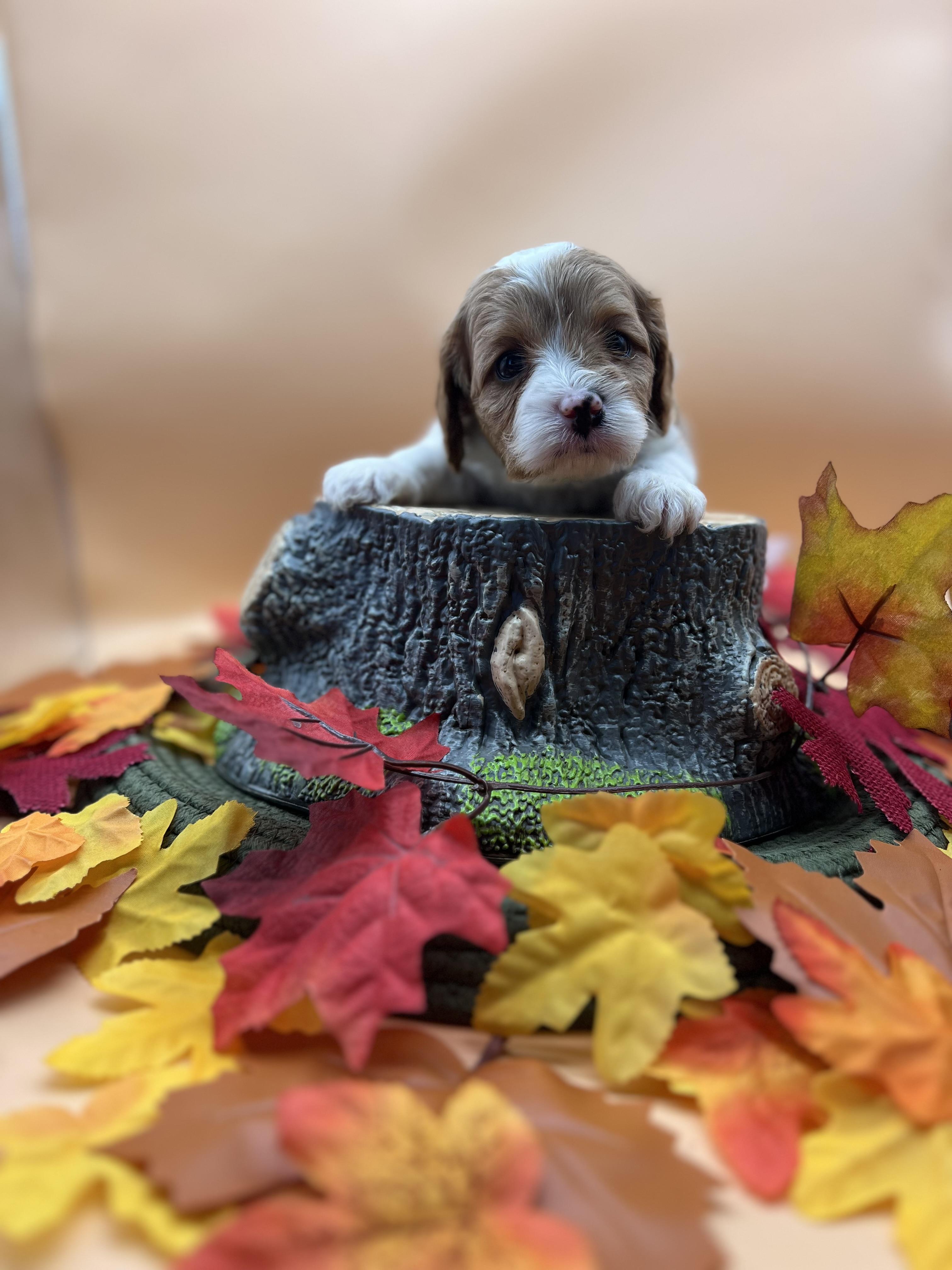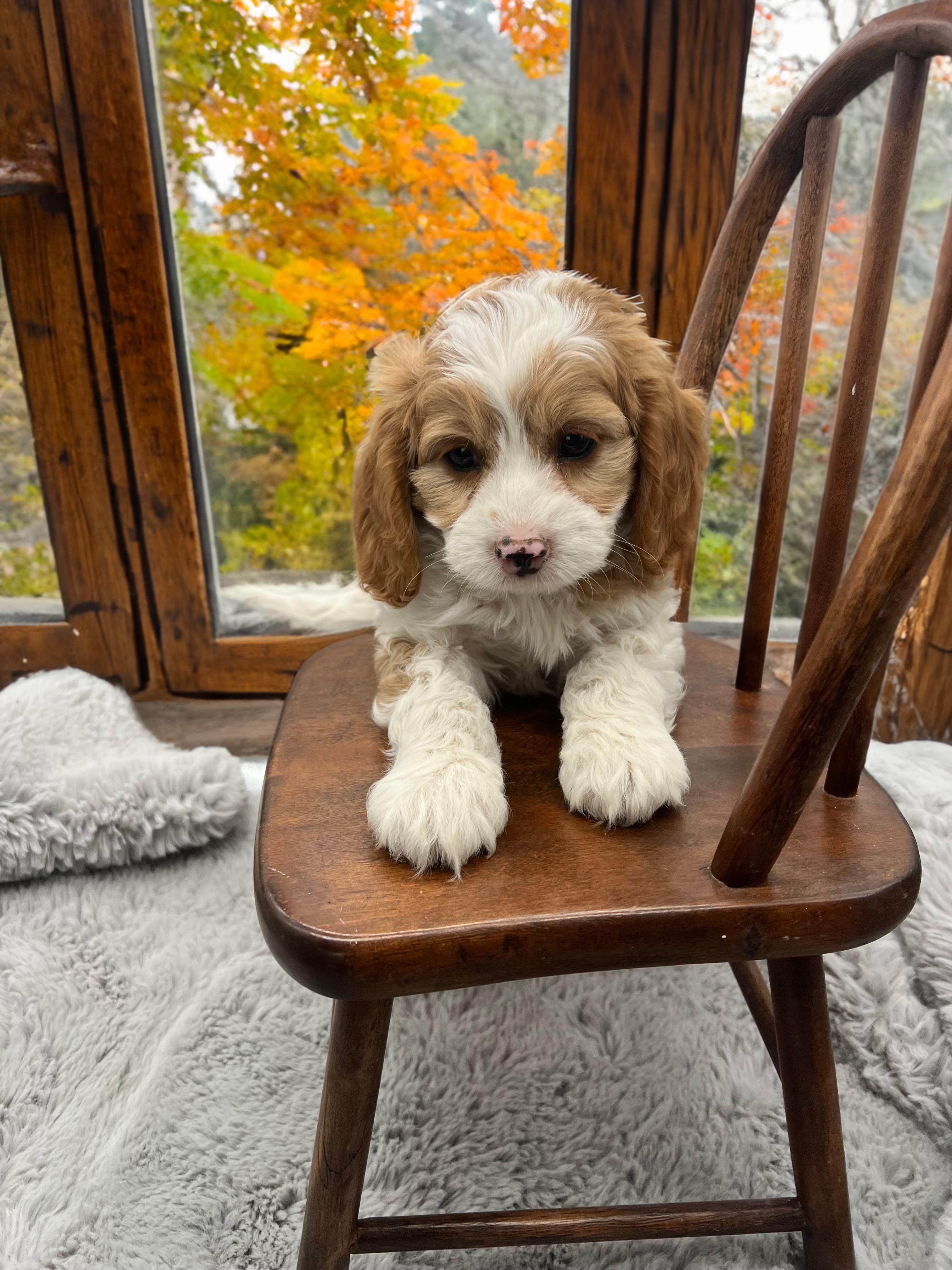 Our Bernedoodle puppies are tri-color. Cavapoo puppies include merle, blenheim, tri-color, red, and black and tan. Goldendoodle puppies include cream, apricot, merle, and parti. Double Doodle puppies include black and apricot. Colors will vary depending on the parent dogs.