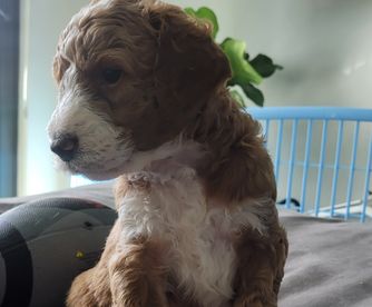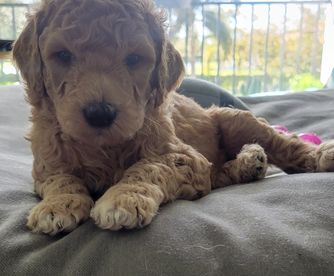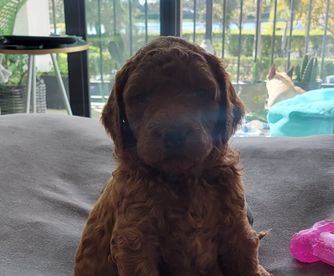 Sophie is a female Goldendoodle almost 5 years old. Carefully selected as a great representative of her breed, Laritza & Stanley decided to make her part of their program. Laritza & Stanley has passed Good Dog’s screening process, which involved a review of their breeding practices, environment, and the mental and physical health of their dogs.