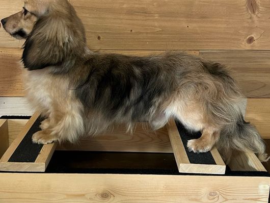 Willow is a female Dachshund. Carefully selected as a great representative of her breed, Kathleen decided to make her part of their program. Kathleen has passed Good Dog’s screening process, which involved a review of their breeding practices, environment, and the mental and physical health of their dogs.