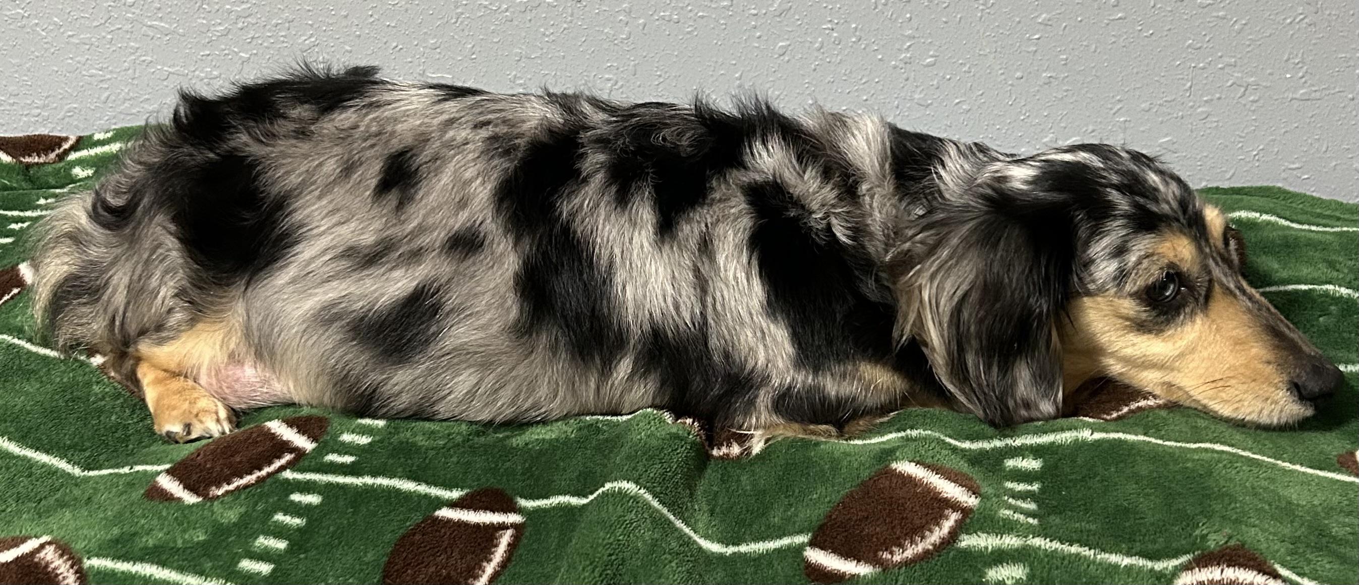 Scotty is a male Dachshund. Carefully selected as a great representative of his breed, Kathleen decided to make him part of their program. Kathleen has passed Good Dog’s screening process, which involved a review of their breeding practices, environment, and the mental and physical health of their dogs.