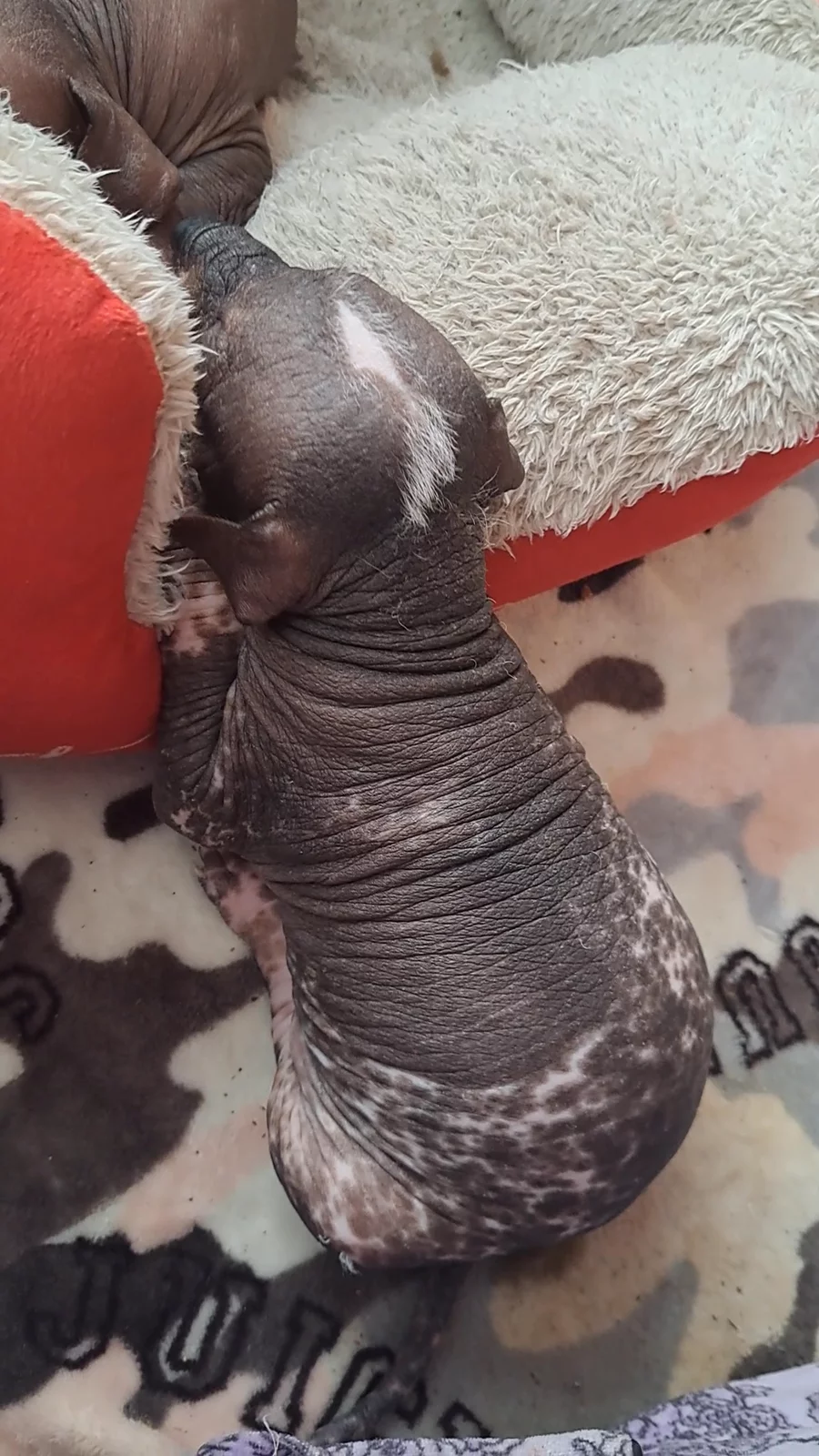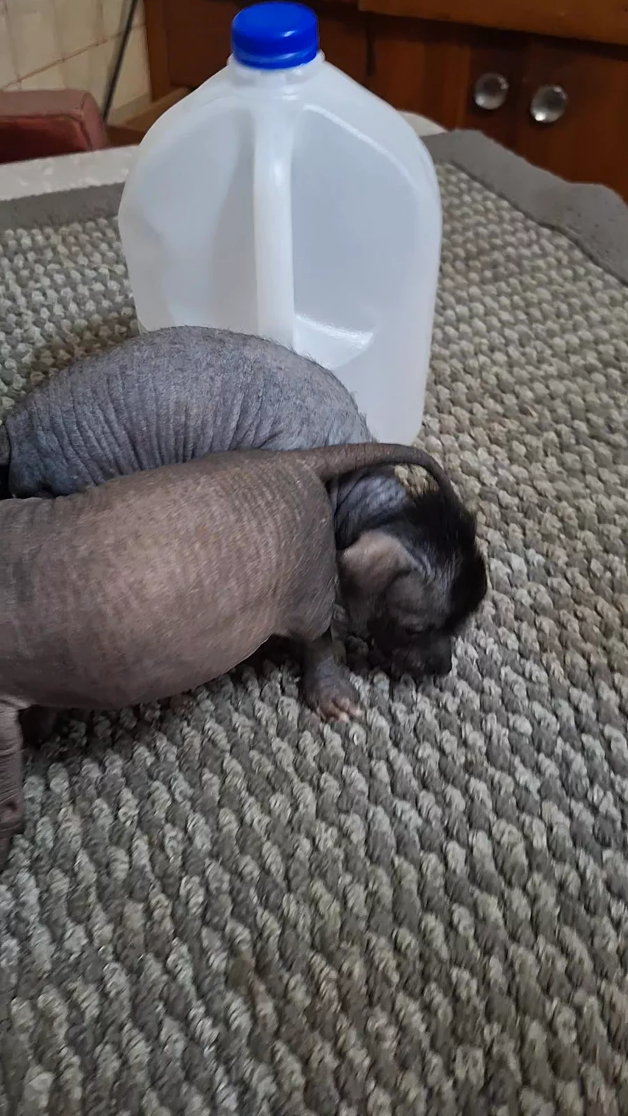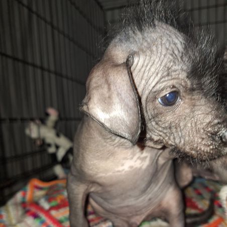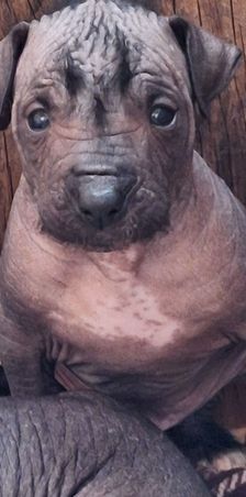 Our puppies have hairless coats. Coat types may vary depending on the parent dogs.